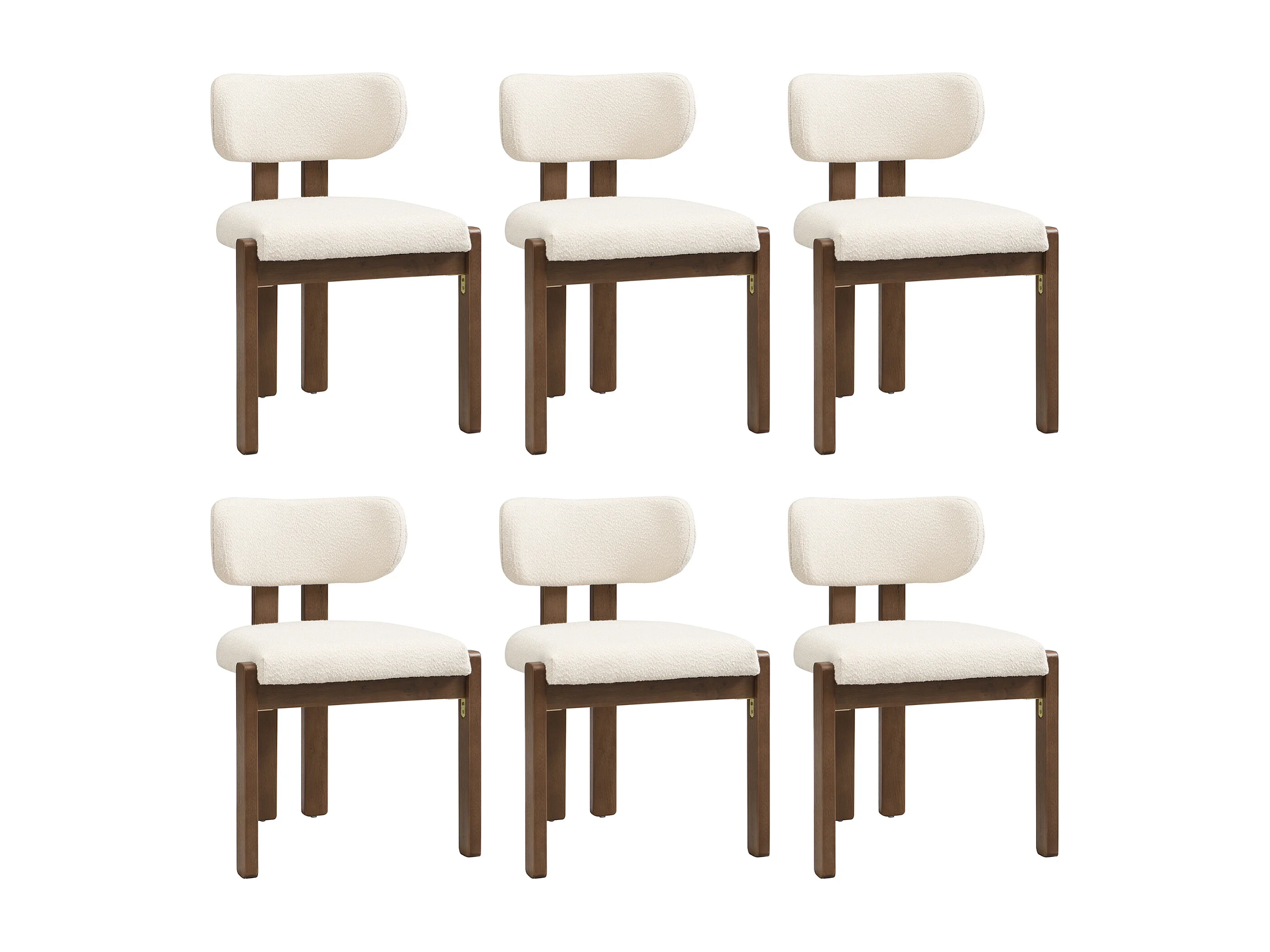 Lot de 6 chaises de salle à manger en bois massif - 54 x 54 x 79 cm - Style moderne - bouclé - beige + marron