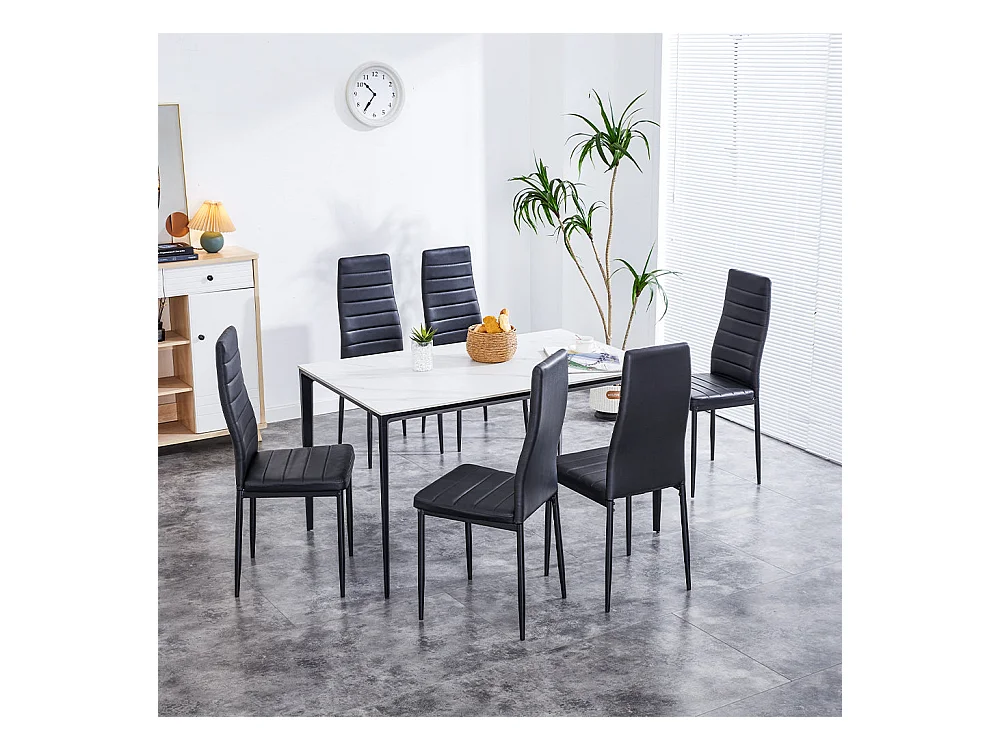 Ensemble de table à manger à six chaises : table blanche,chaises avec dossiers et coussins
