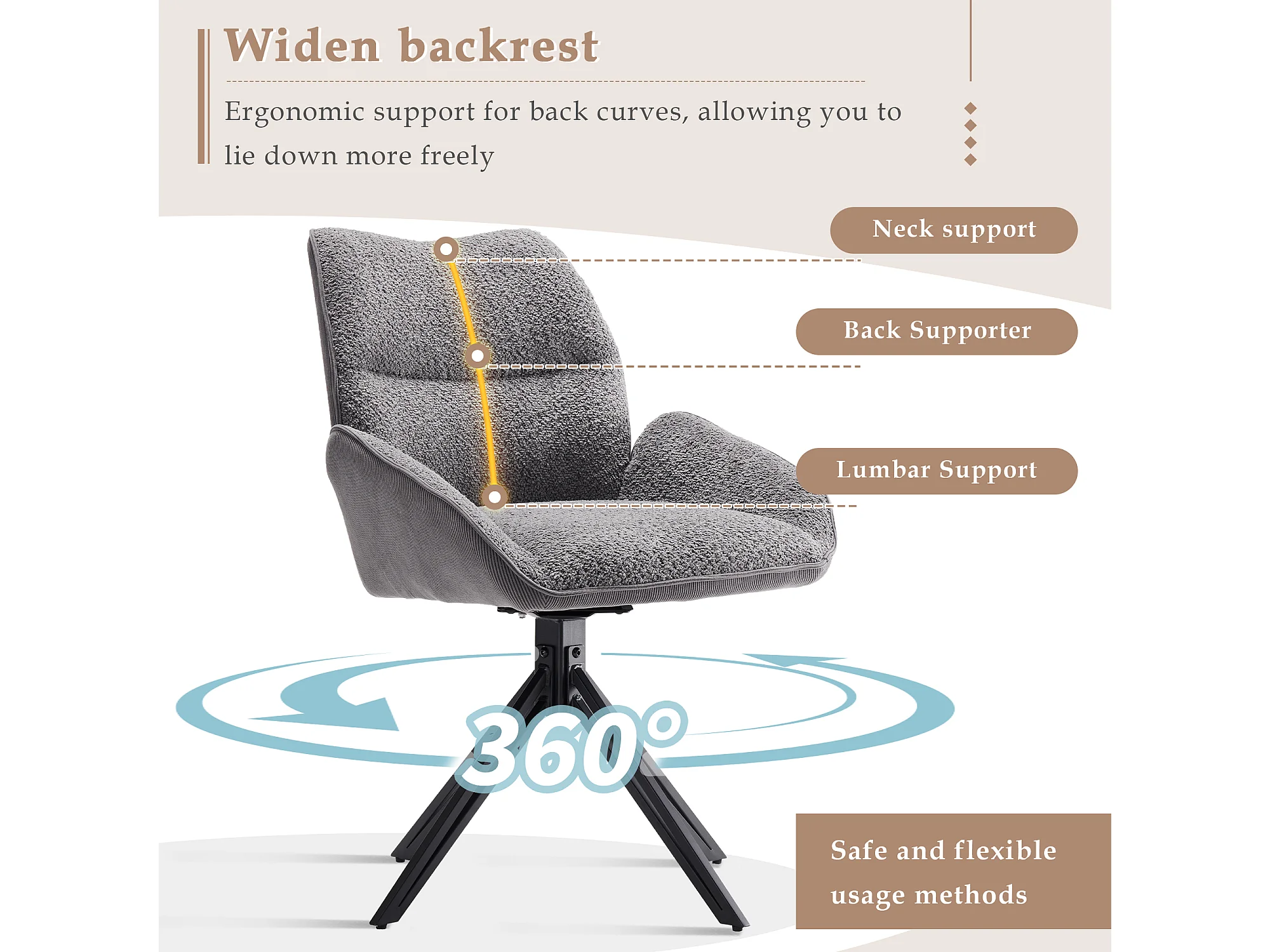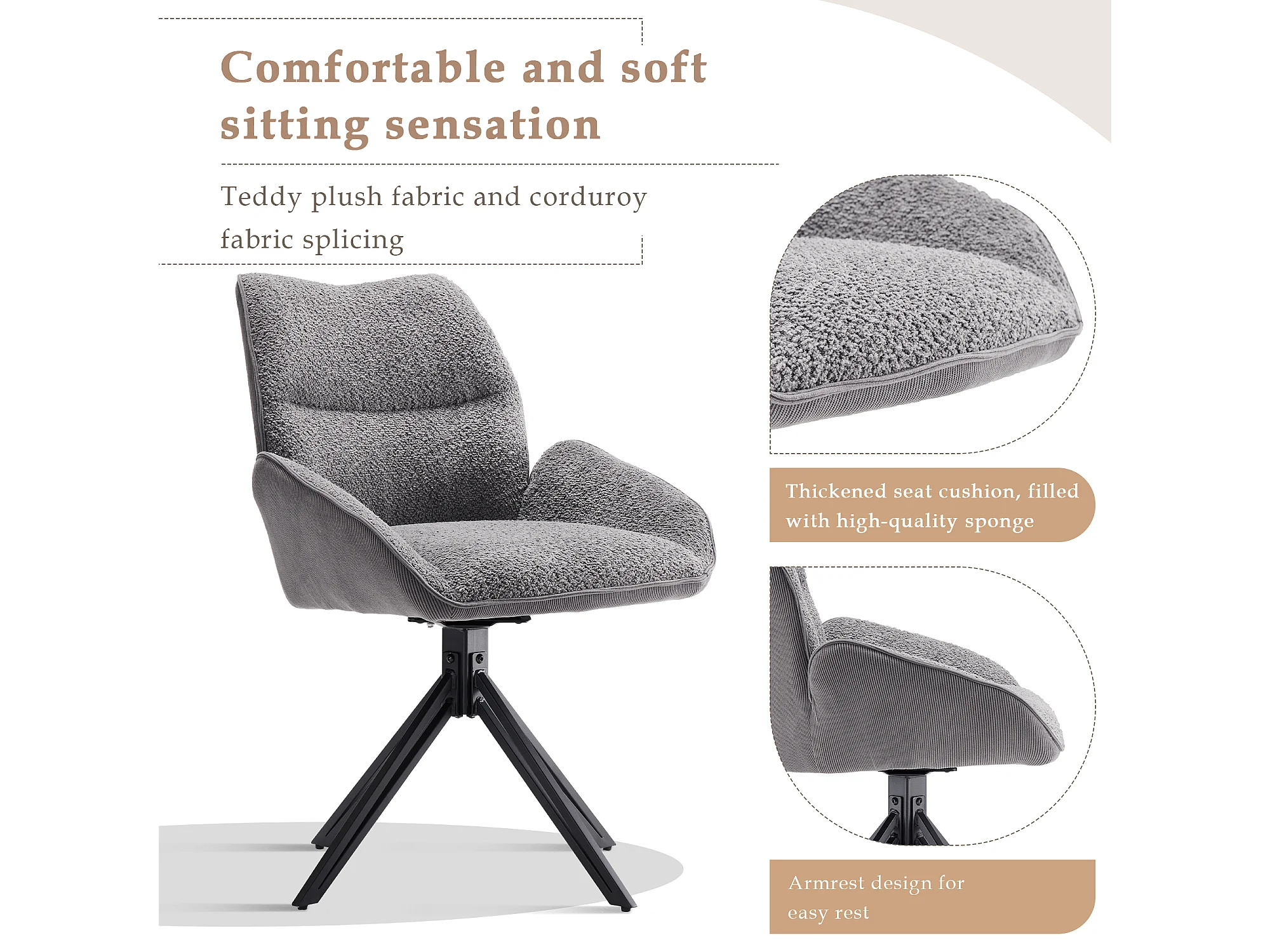 Lot de 6 Chaises de salle à manger - pivotant à 360° - tissu en sherpa - Gris