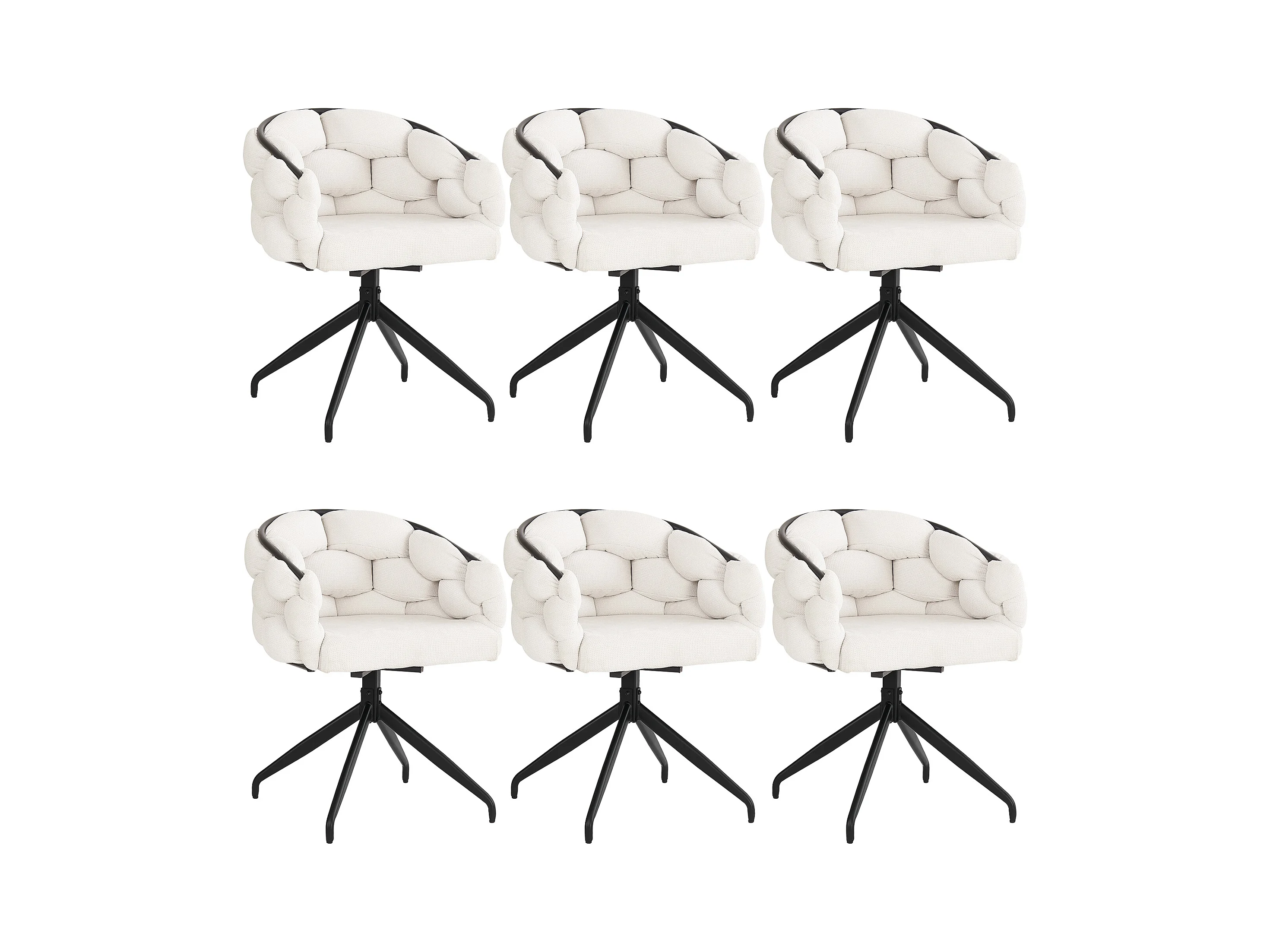 Lot de 6 chaises de salle à manger pivotantes - 61 x 59 x 77.5 cm - Velours et pieds en fer - Beige + noir