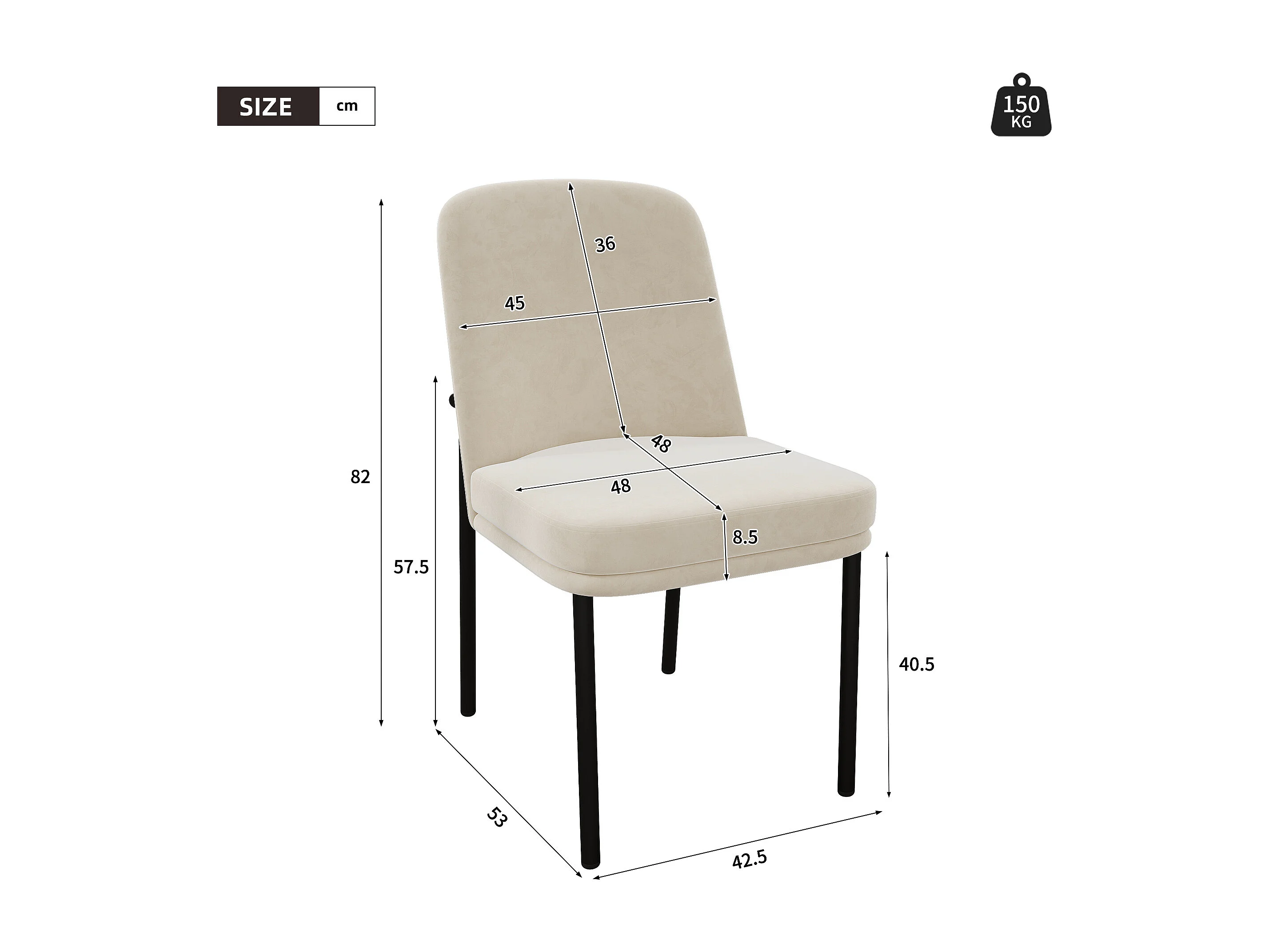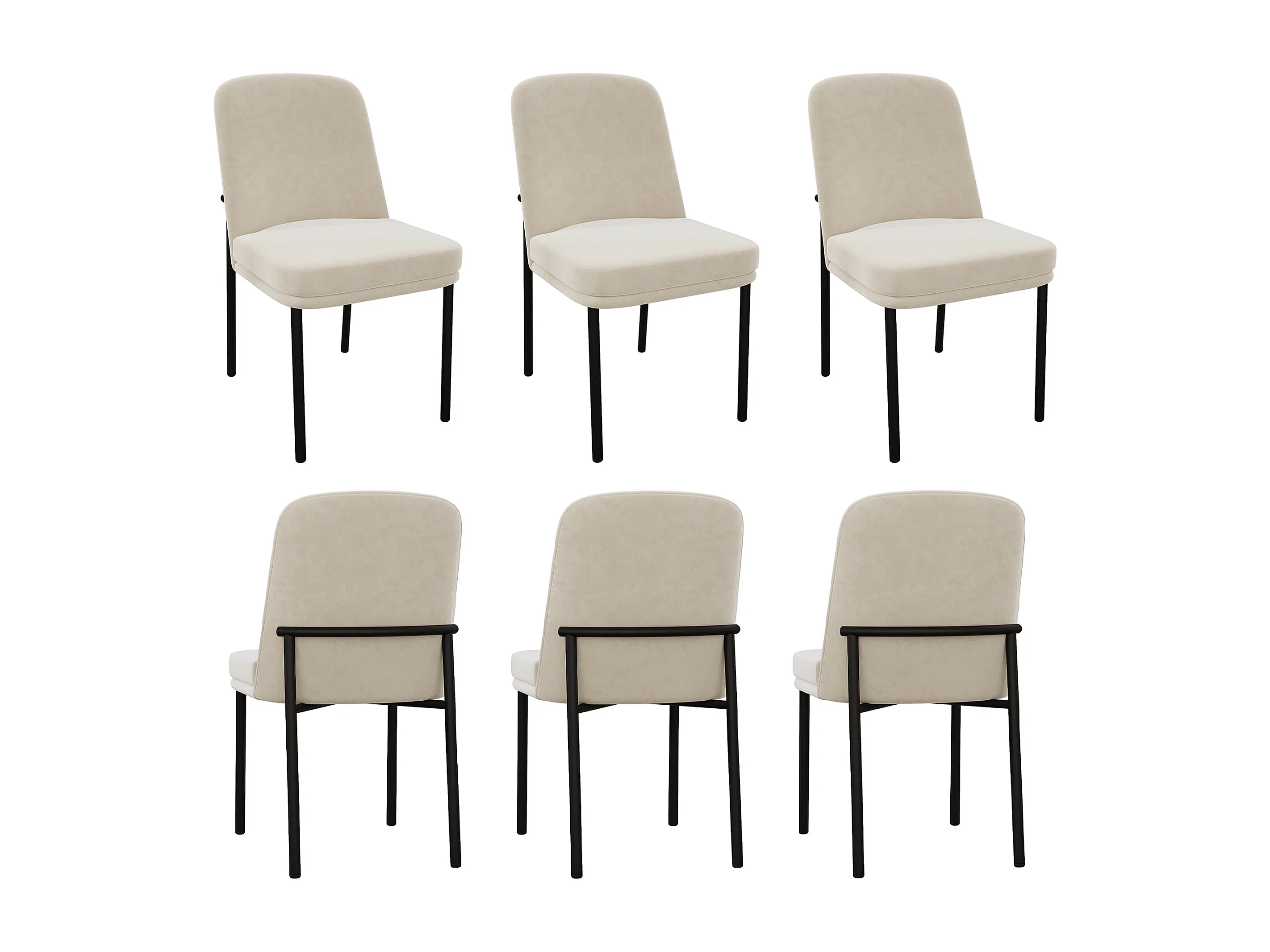 Lot de 6 chaises de salle à manger rembourrées en velours avec cadre métallique noir - velours beige