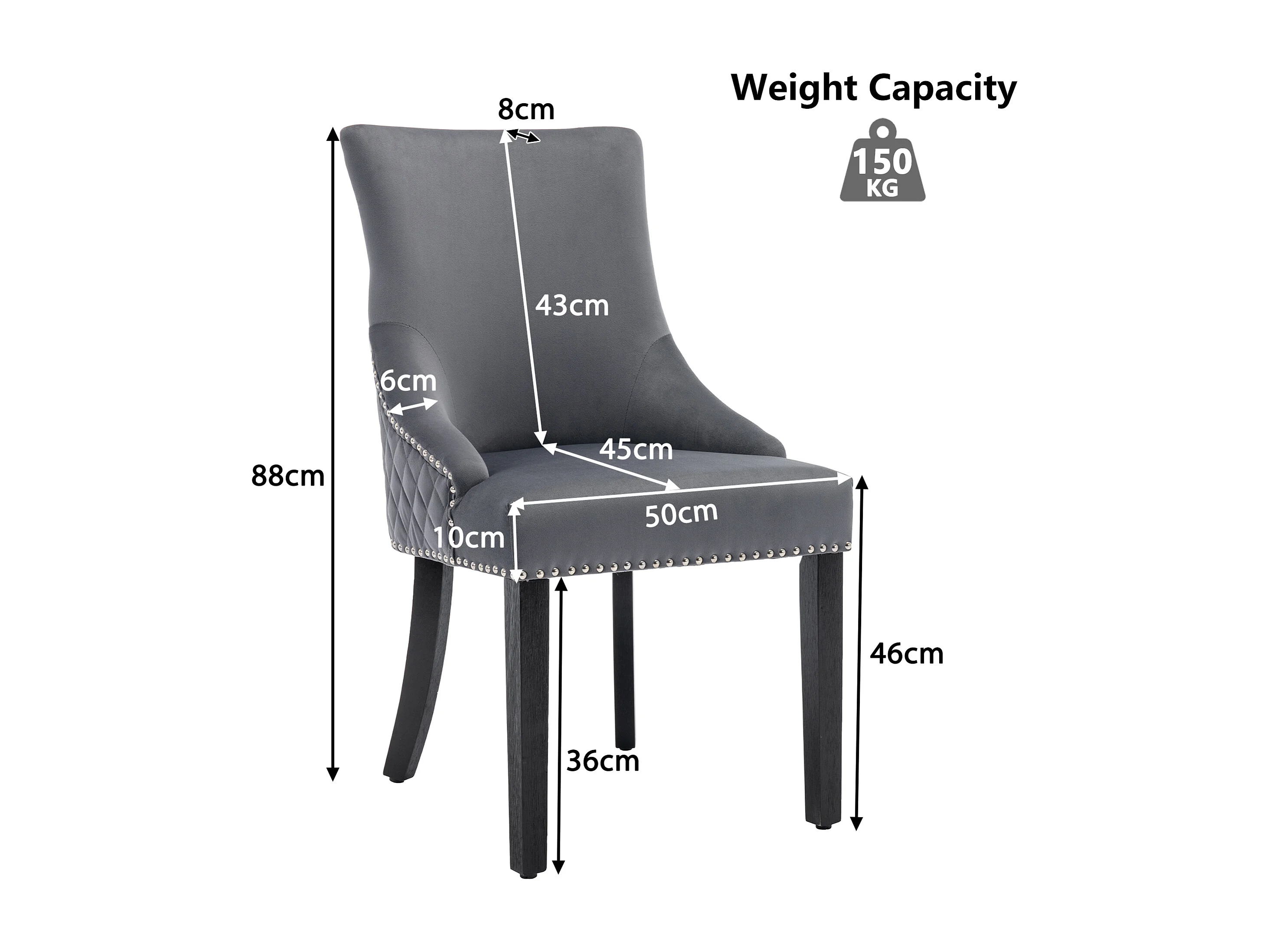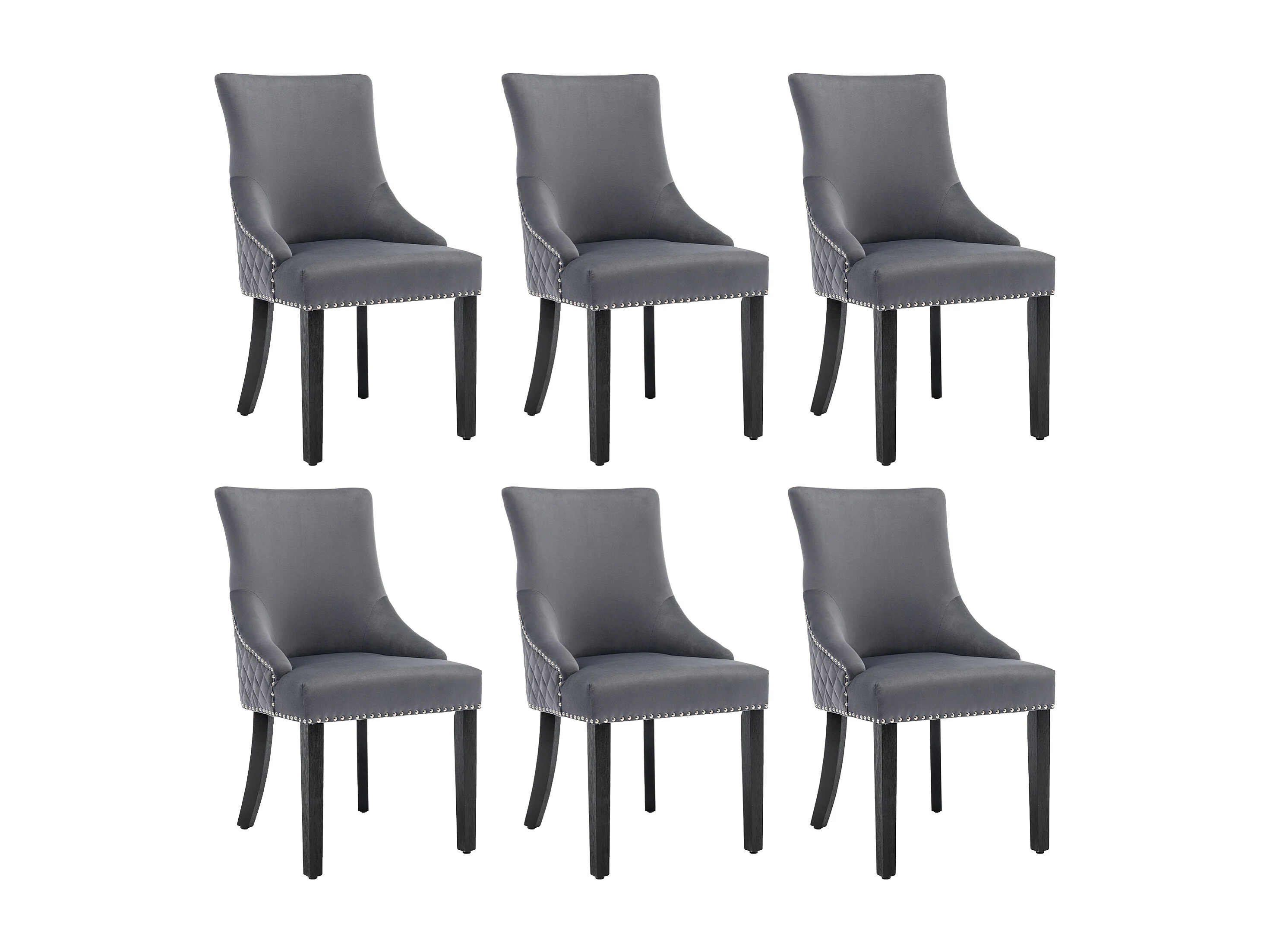 Lot de 6 Chaises de salle à manger - Velours - Pièds en nois massif - Dossier avec motif losange - Gris