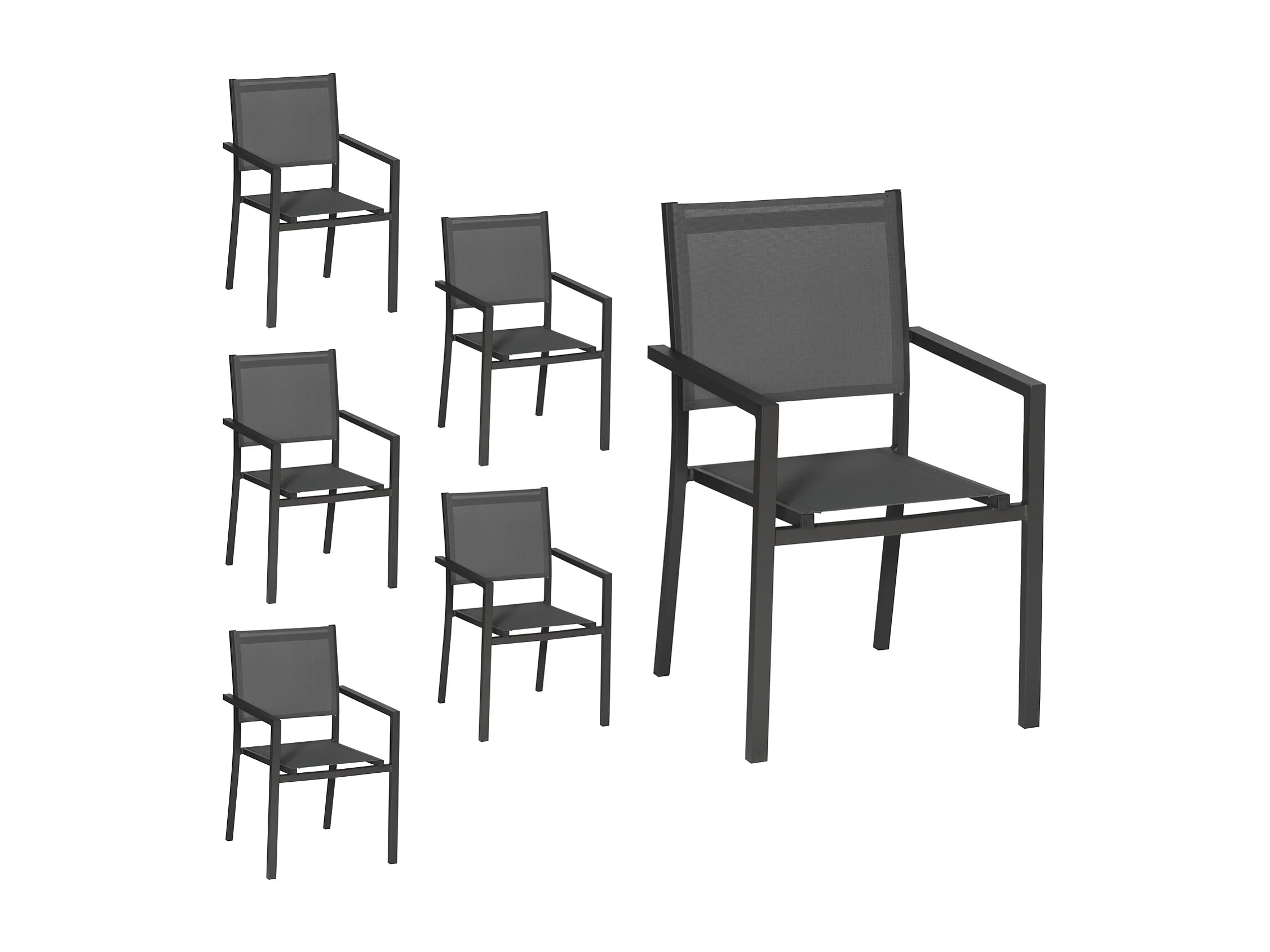 Lot de 6 chaises en aluminium anthracite - textilène gris - HAPPY GARDEN