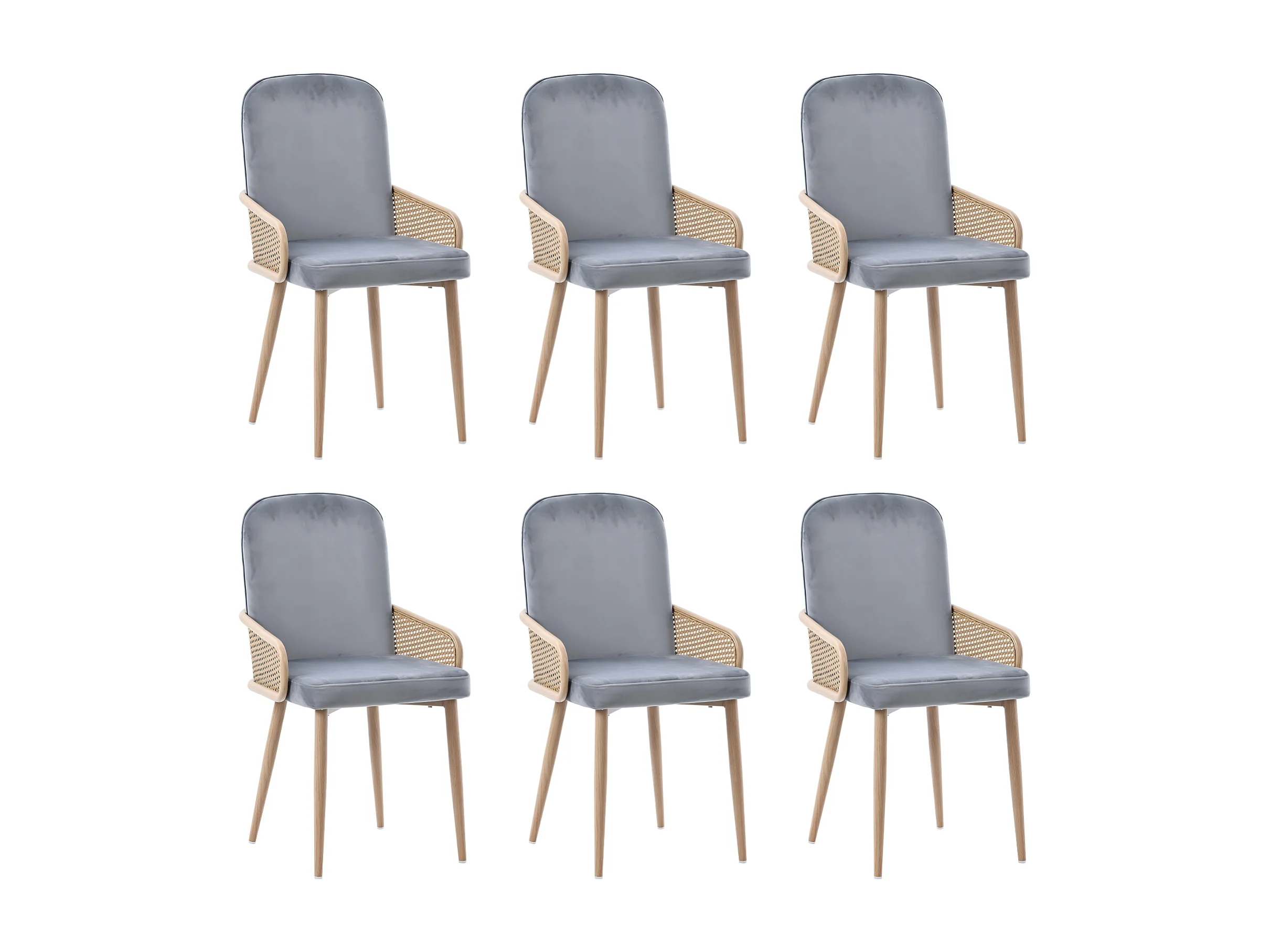 Lot de 6 chaises en métal et rotin, pieds en métal grain de bois, 45x43x90cm, Gris