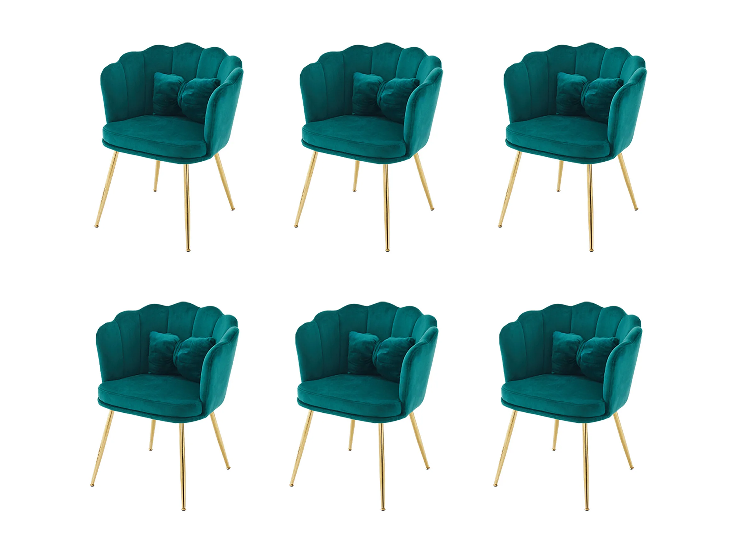 Lot de 6 chaises en velours - 63 x 58 x 77 cm - Pieds en métal plaqué et coussins papillon - Vert