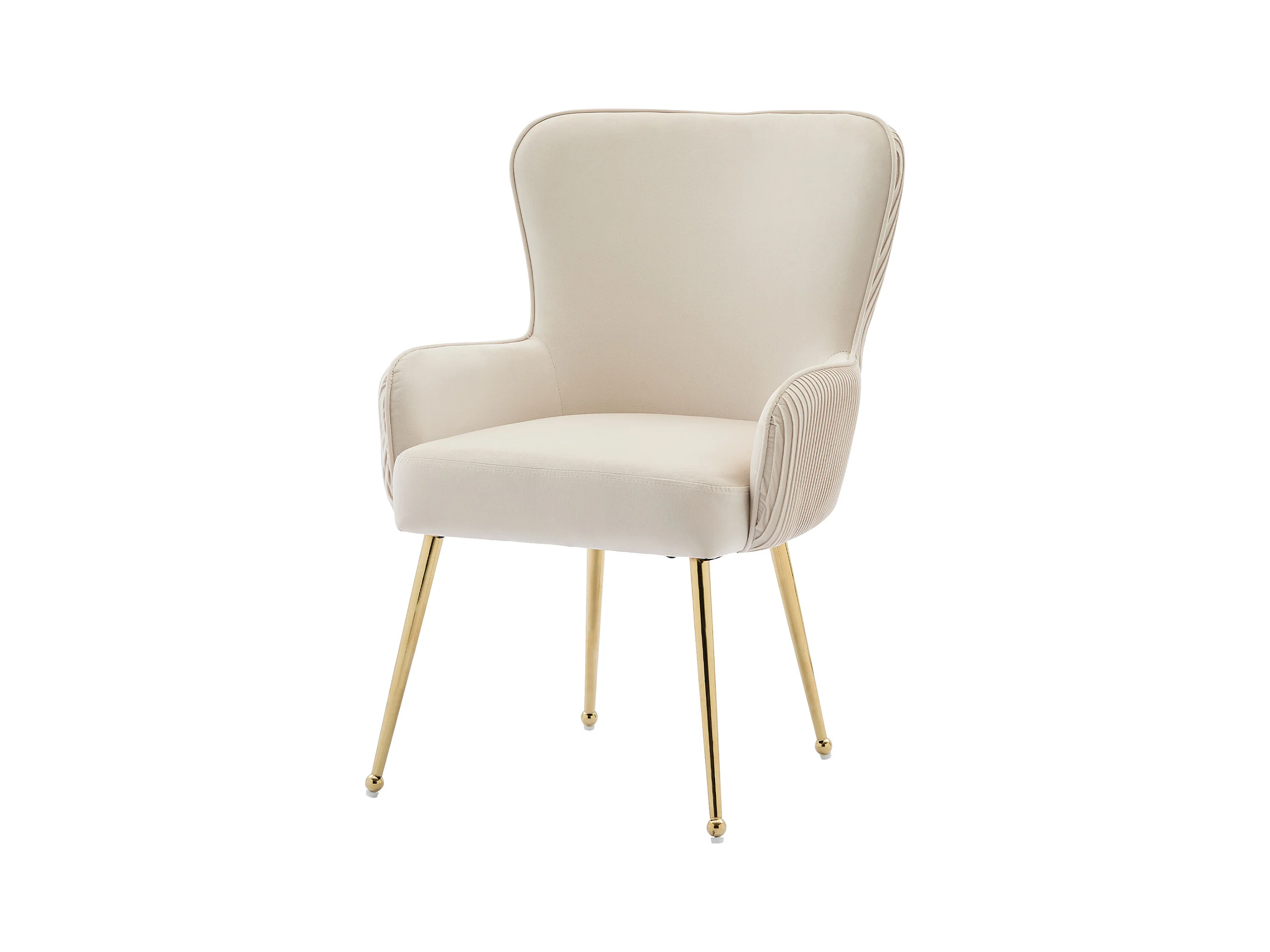 Lot de 6 Chaises en velours - 83 x 53 x 57 cm - quatre pieds en métal doré -avec accoudoirs et pieds réglables - beige