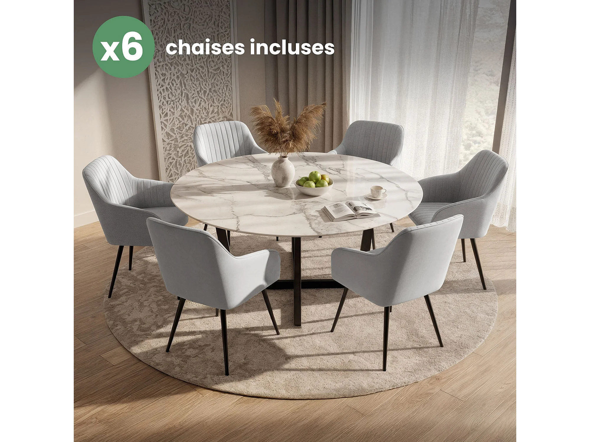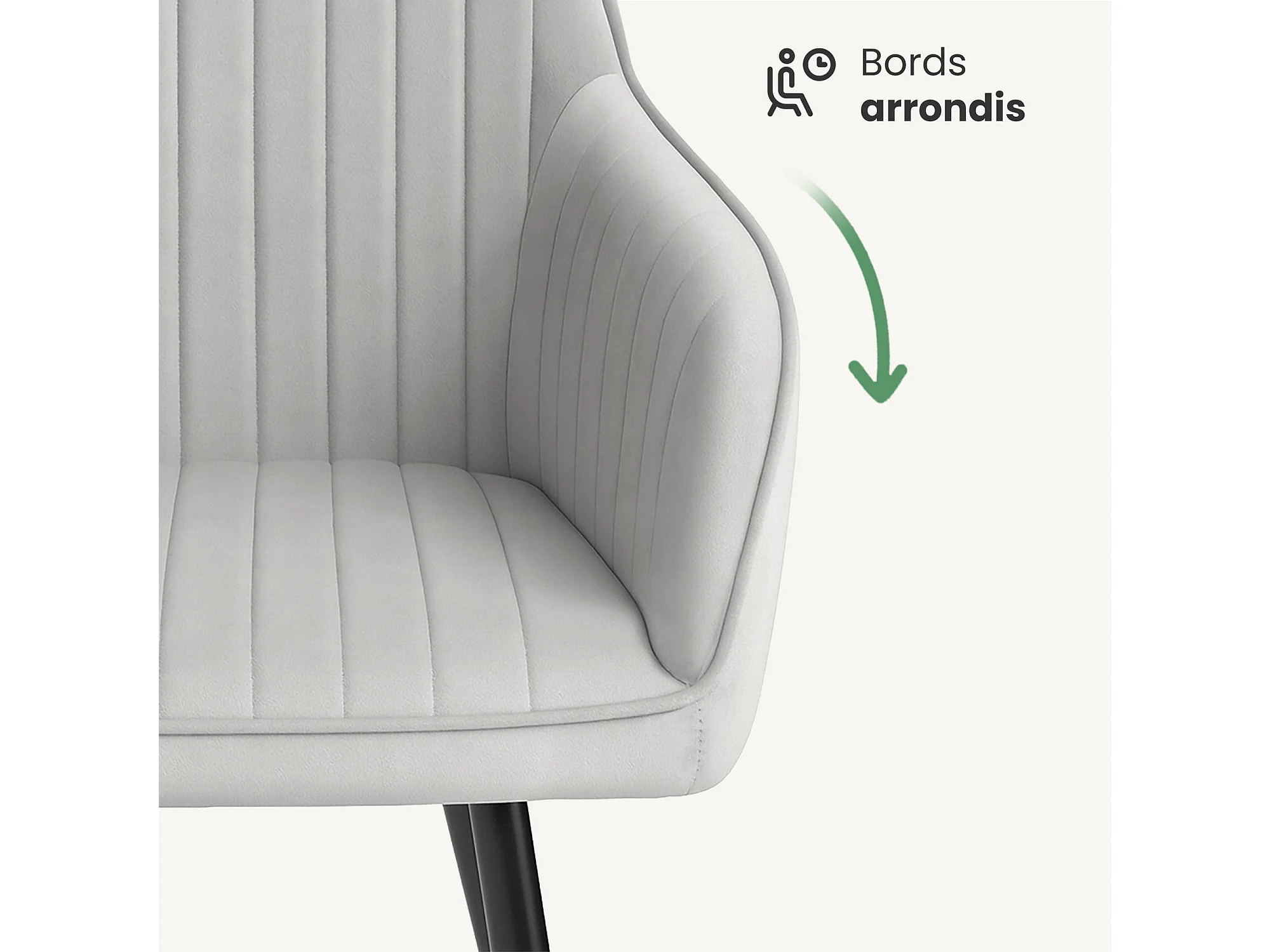 Lot de 6 Chaises en velours à surpiqûres FLORENCE Gris pieds noirs
