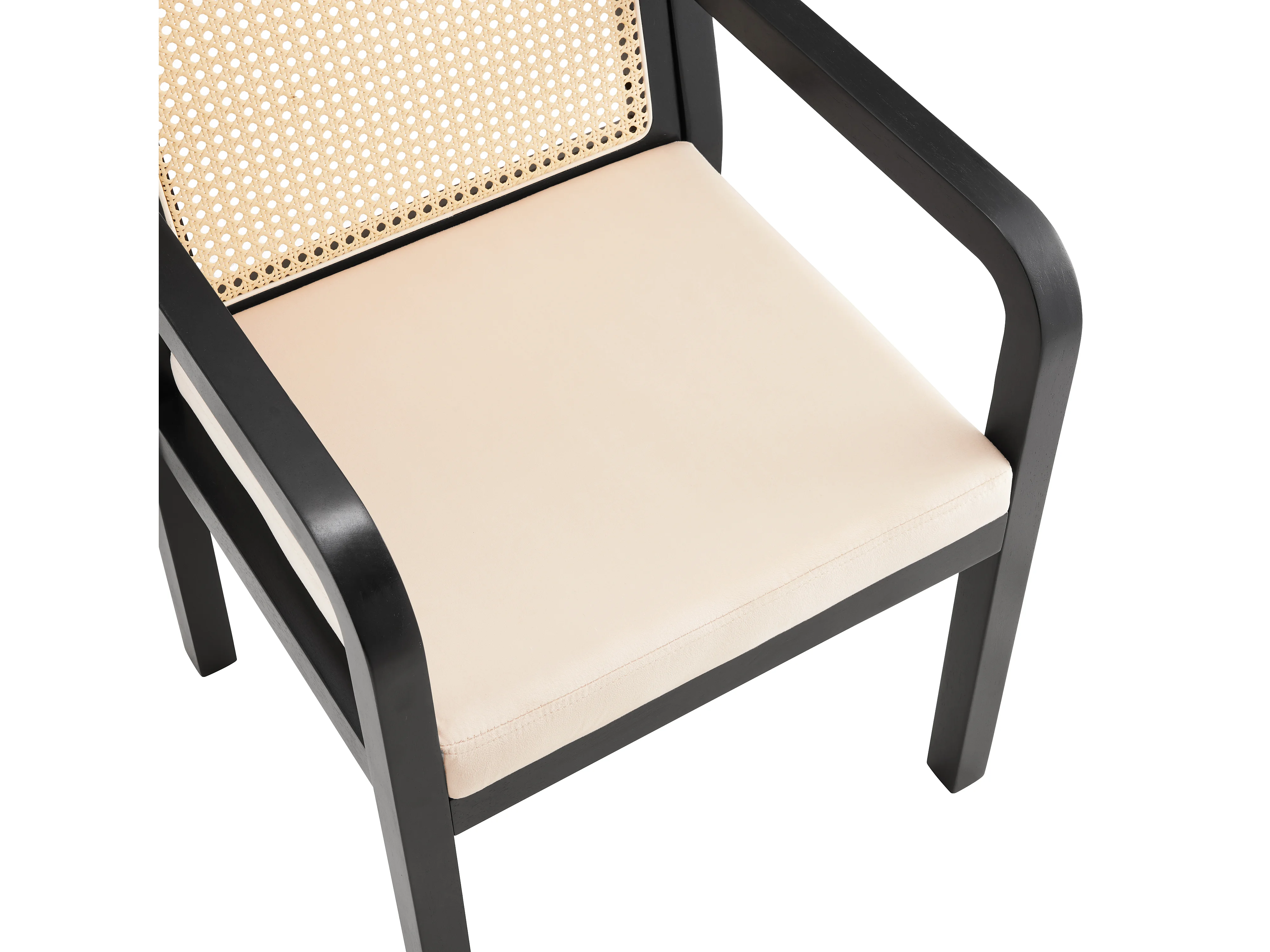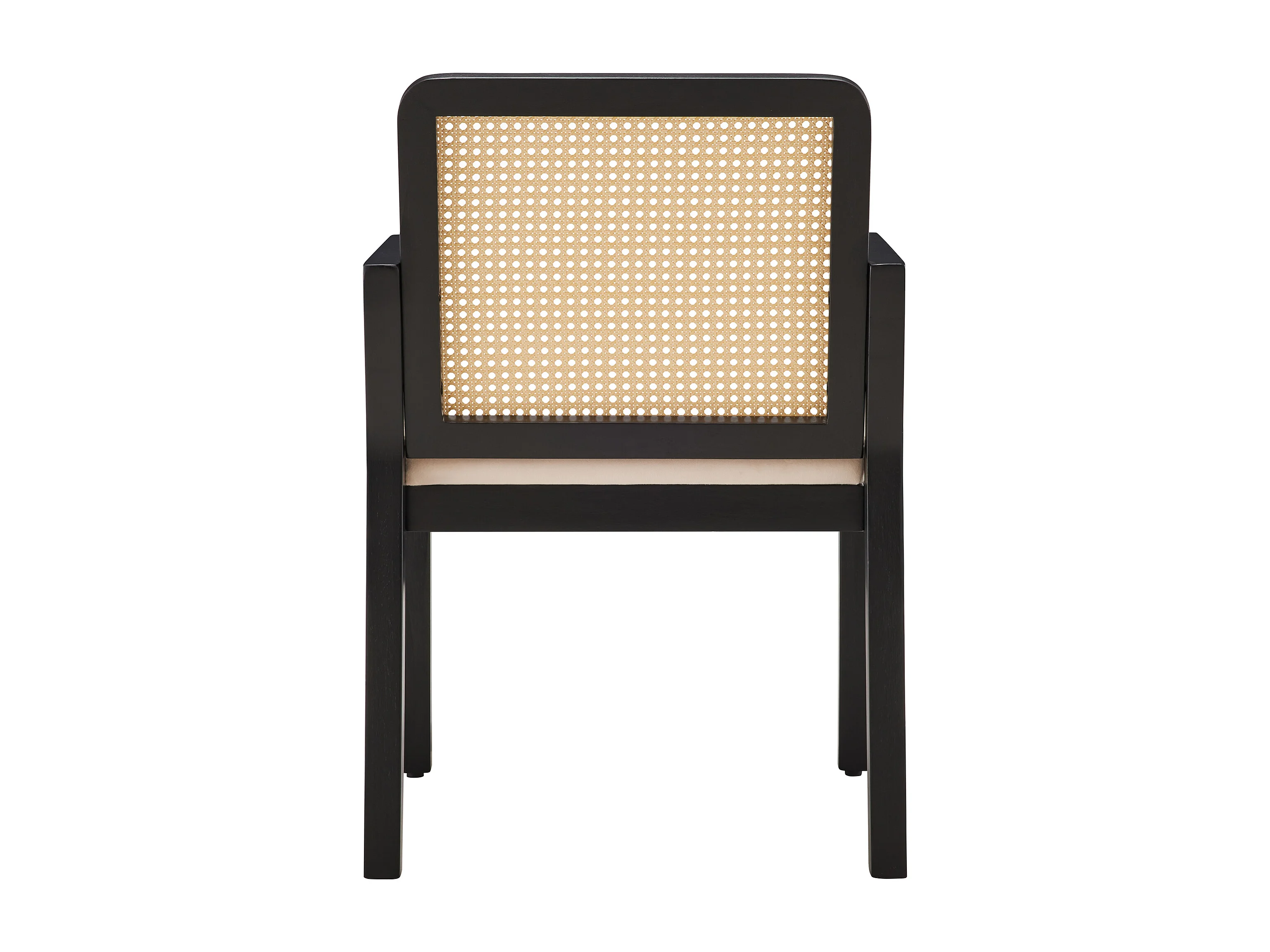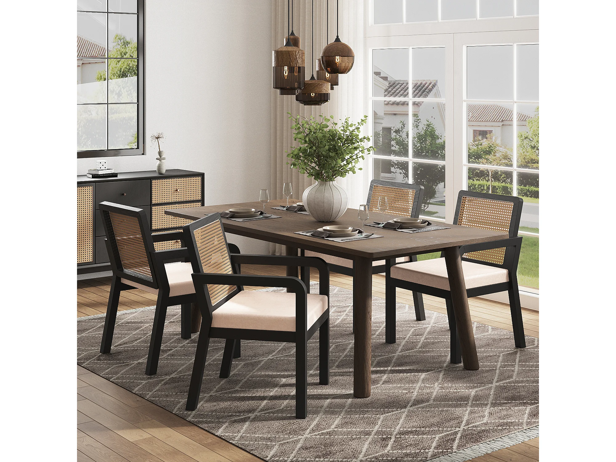 Lot de 6 chaises en velours avec dossier en rotin - Noir et naturel clair