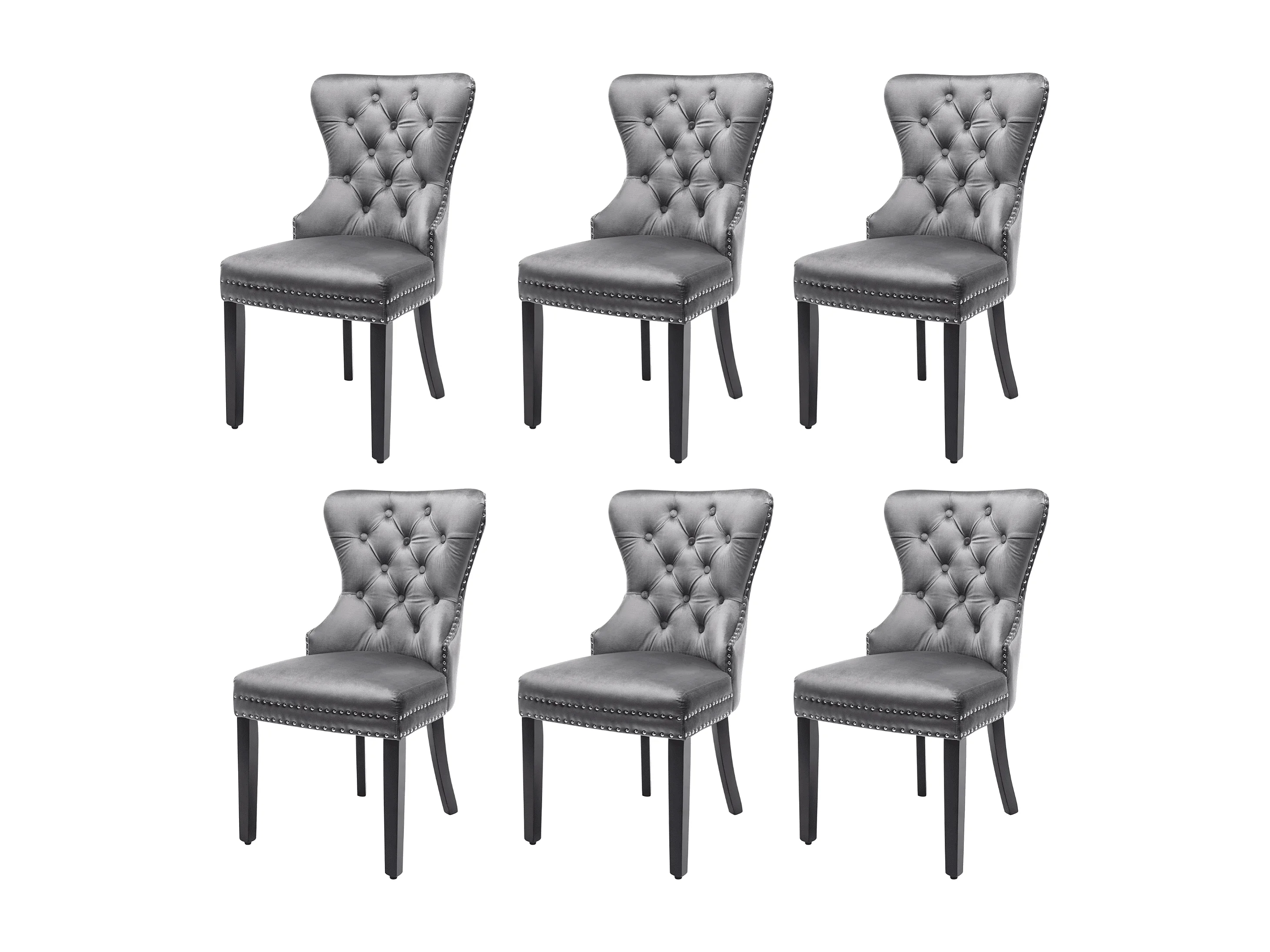 Lot de 6 chaises en velours, structure bois massif et pieds en bois de caoutchouc – gris