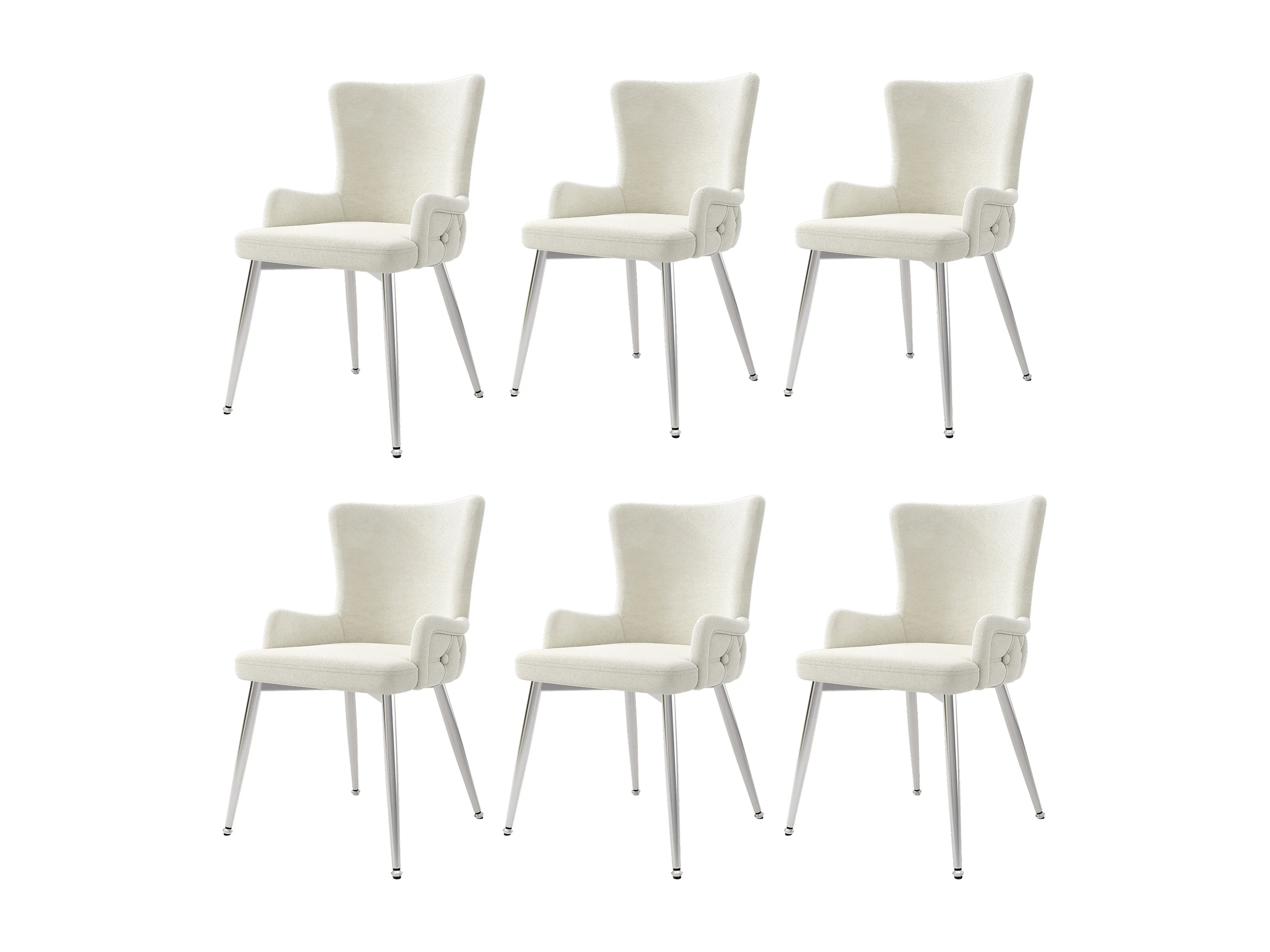 Lot de 6 chaises luxe en velours - 85 x 47 x 49 cm - avec quatre pieds en métal argenté - beige