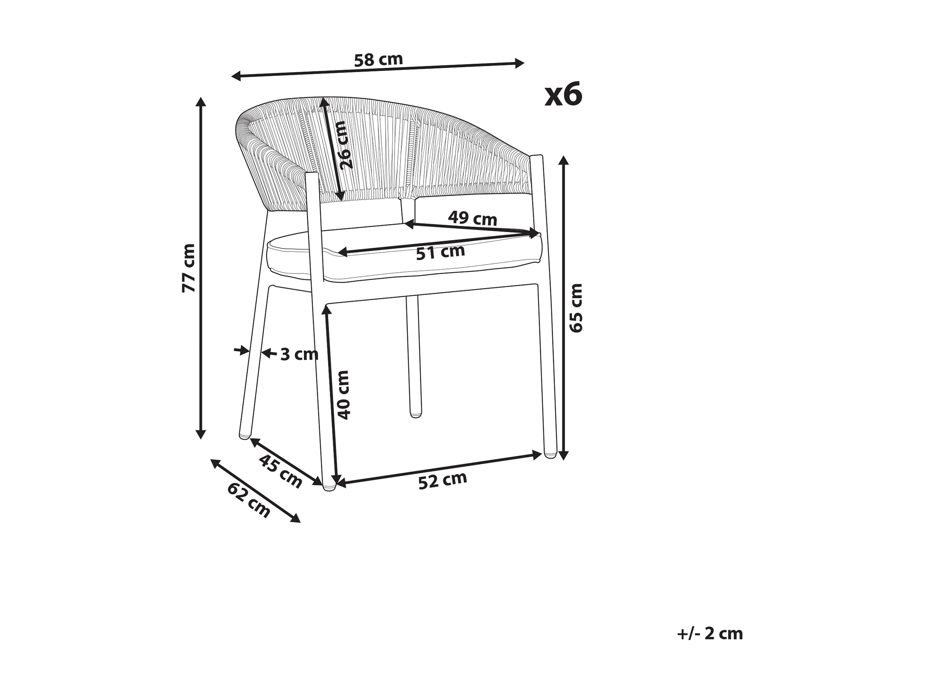 Lot de 6 chaises de jardin avec coussins FLAVIA Métal Blanc