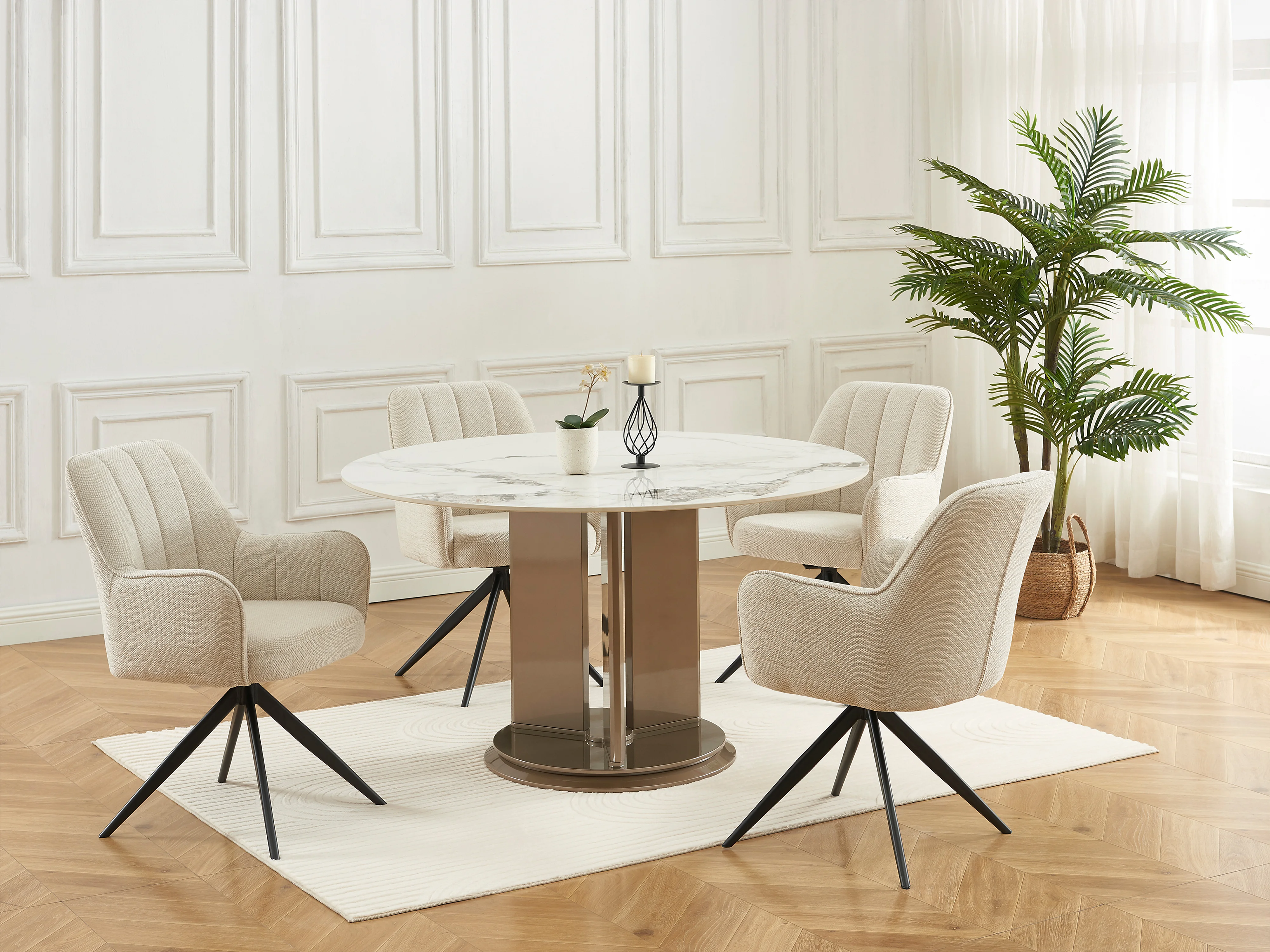 Lot de 6 chaises pivotantes avec accoudoirs en tissu et métal noir - Crème - LEJINA de Pascal Morabito