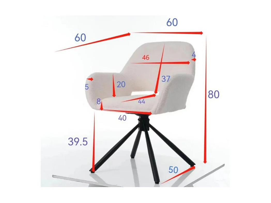 Lot de 4 Chaises pivotantes avec accoudoirs - en sherpa bouclette - style moderne - Blanc