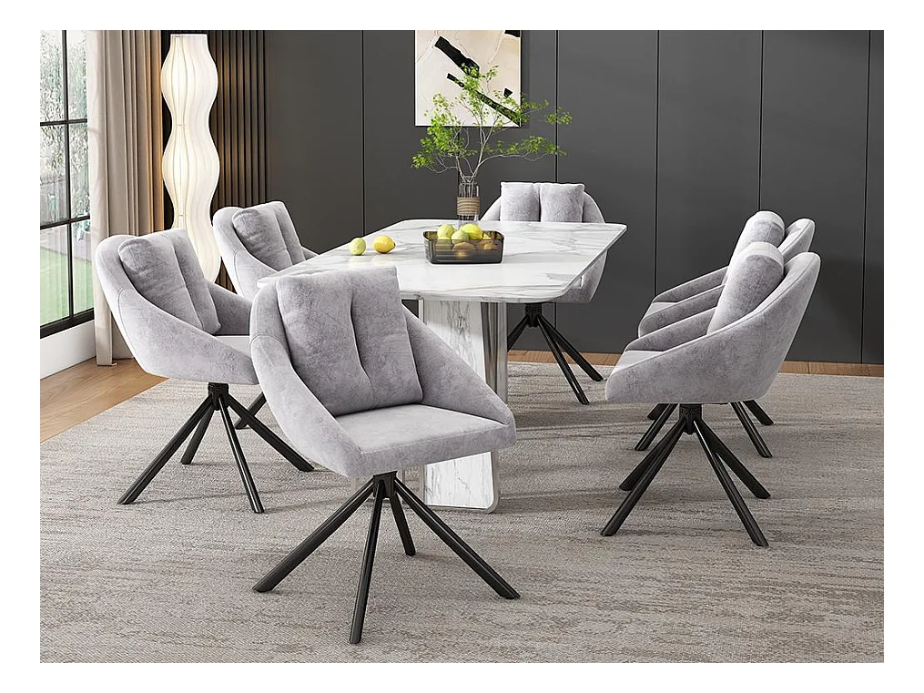 Lot de 6 Chaises pivotantes en velours - structure en métal - Gris