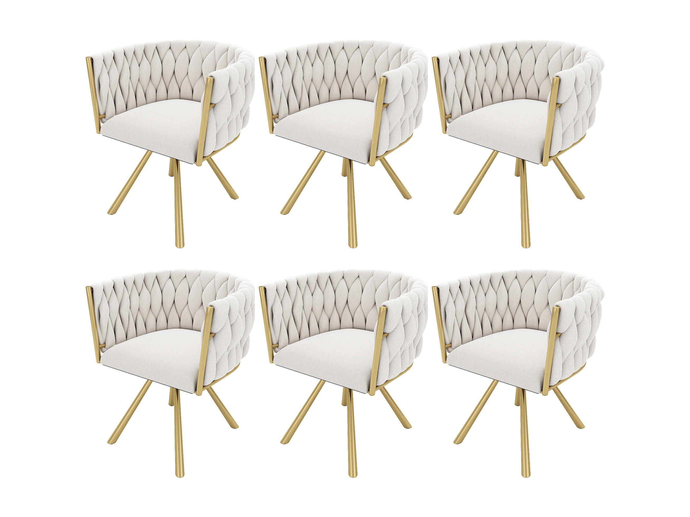 Lot de 6 chaises pivotantes , pieds métal doré- Tissu velours beige