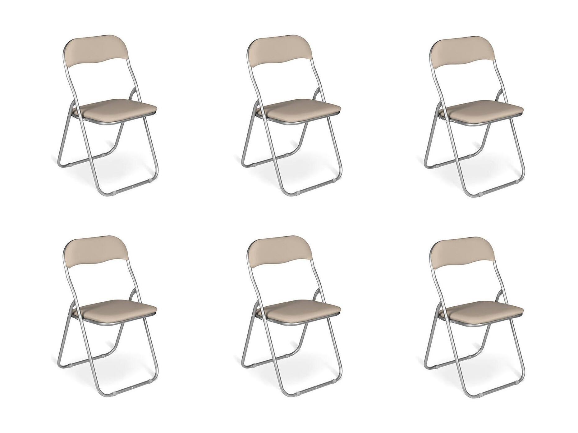 Lot de 6 chaises pliantes Marbella, Fauteuil gain de place, Chaise invité, Siège de réunion en simili cuir, 43x47h80 cm, Beige