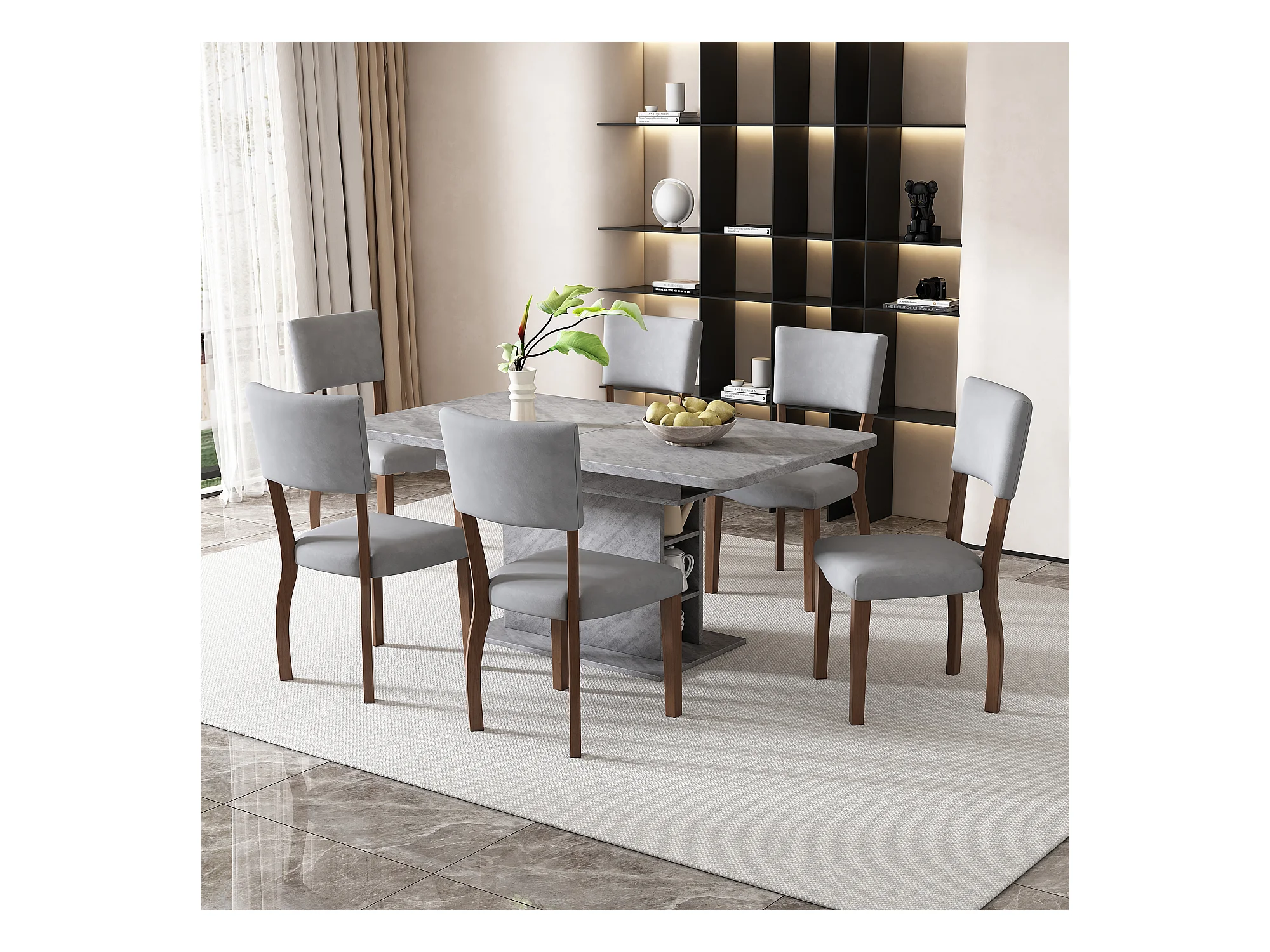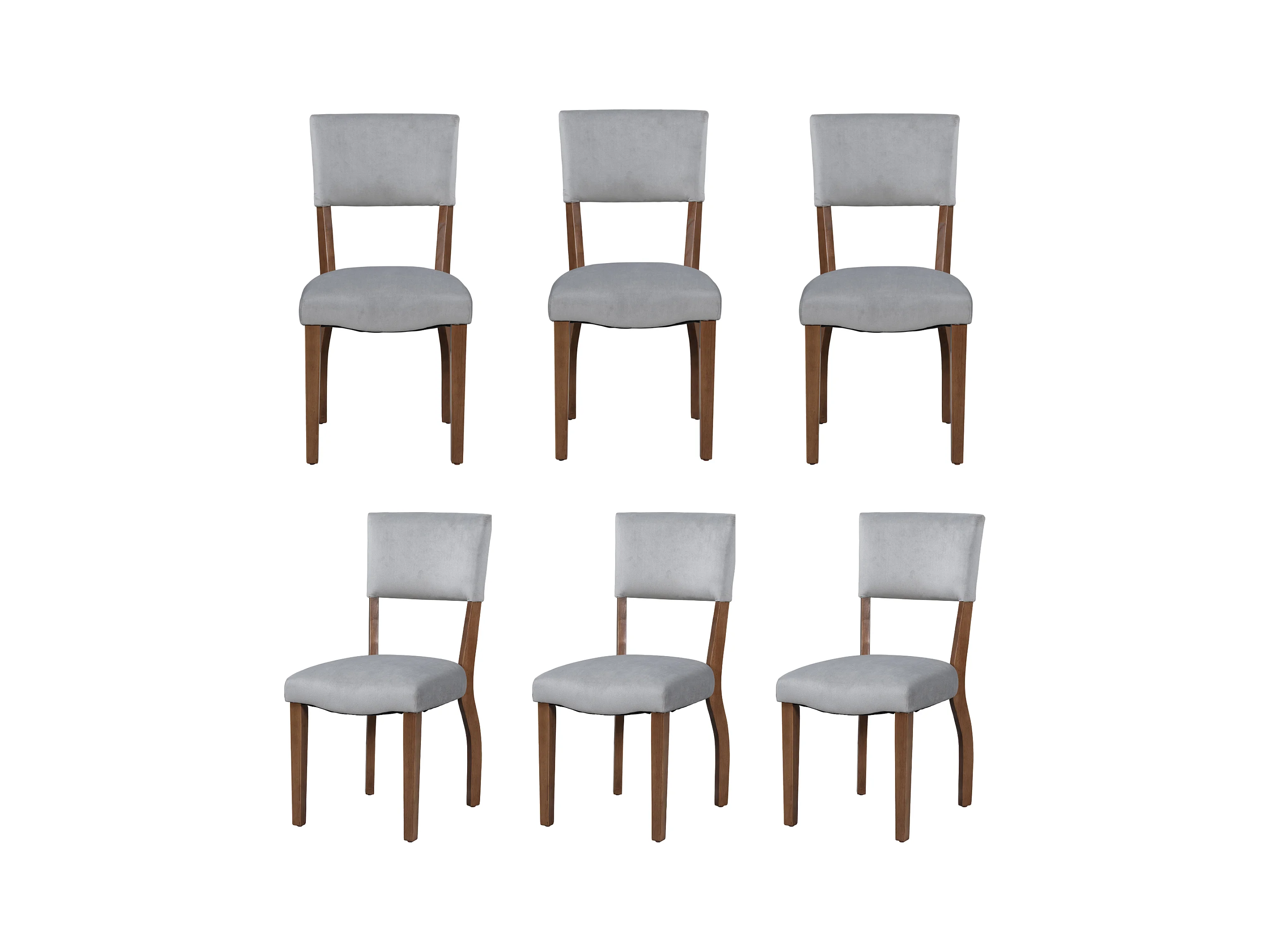 Lot de 6 chaises rembourré en velours et bois - pour salon ou salle à manger - marron et gris