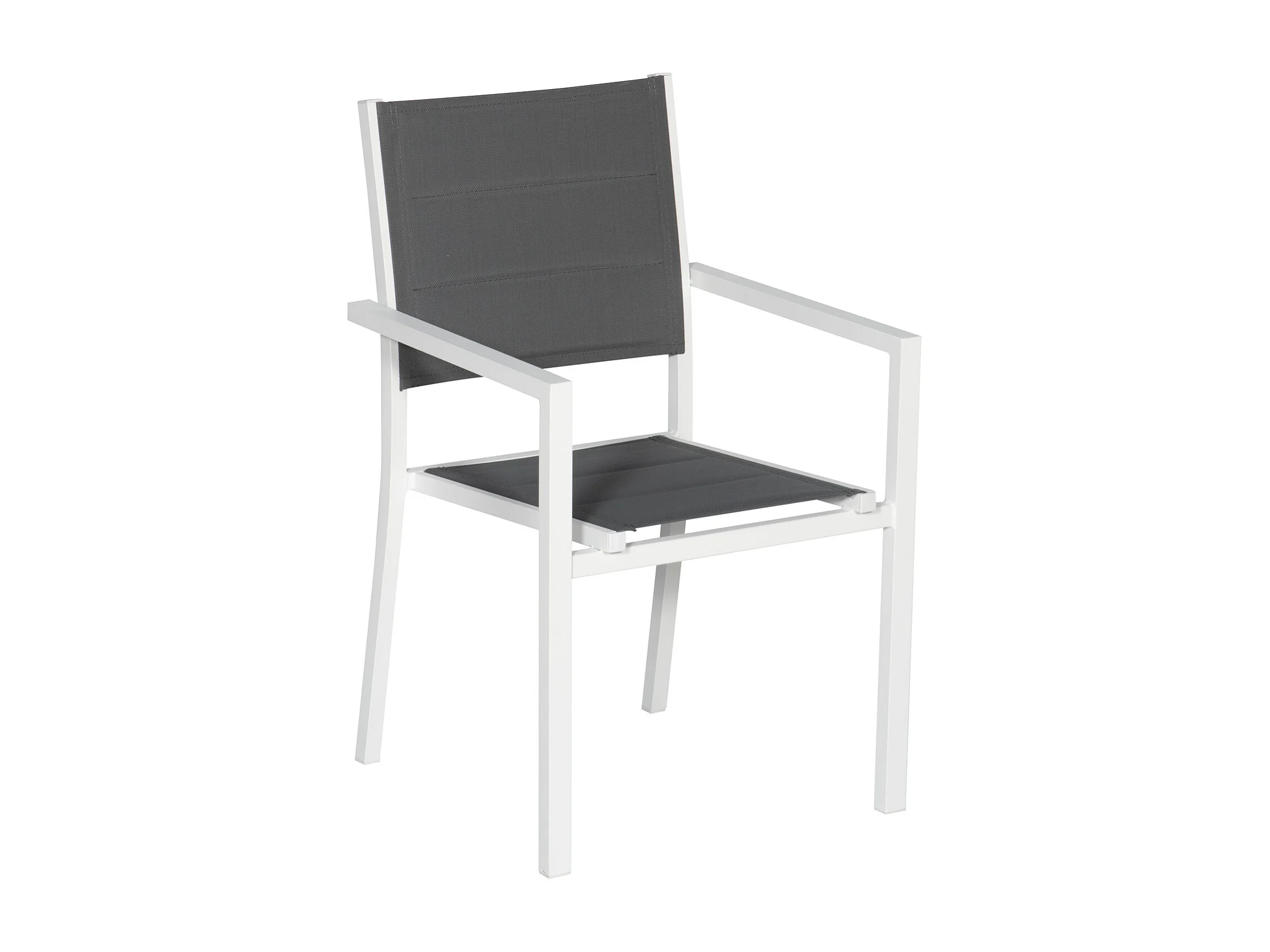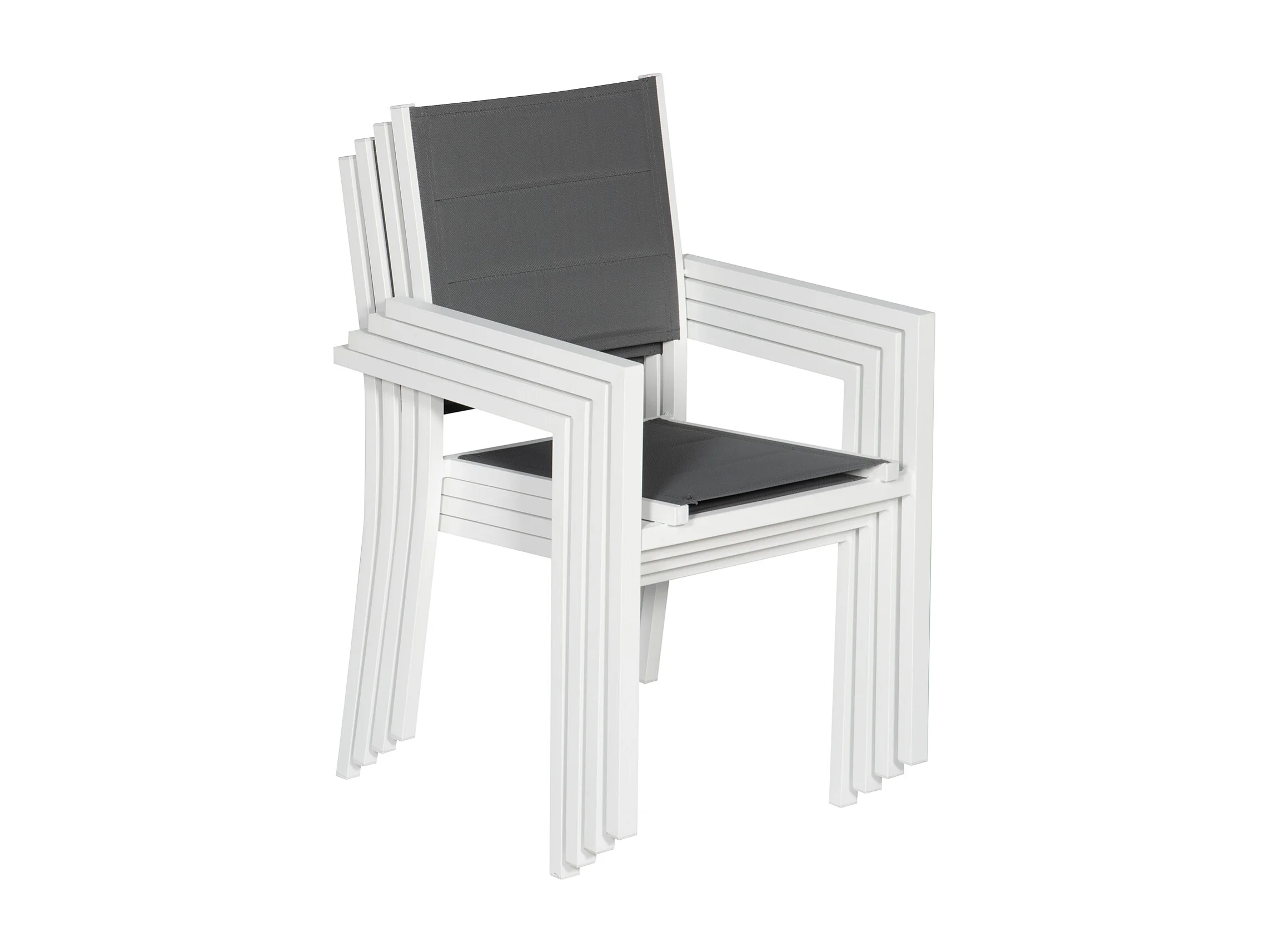 Lot de 6 chaises rembourrées en aluminium blanc - textilène gris - HAPPY GARDEN