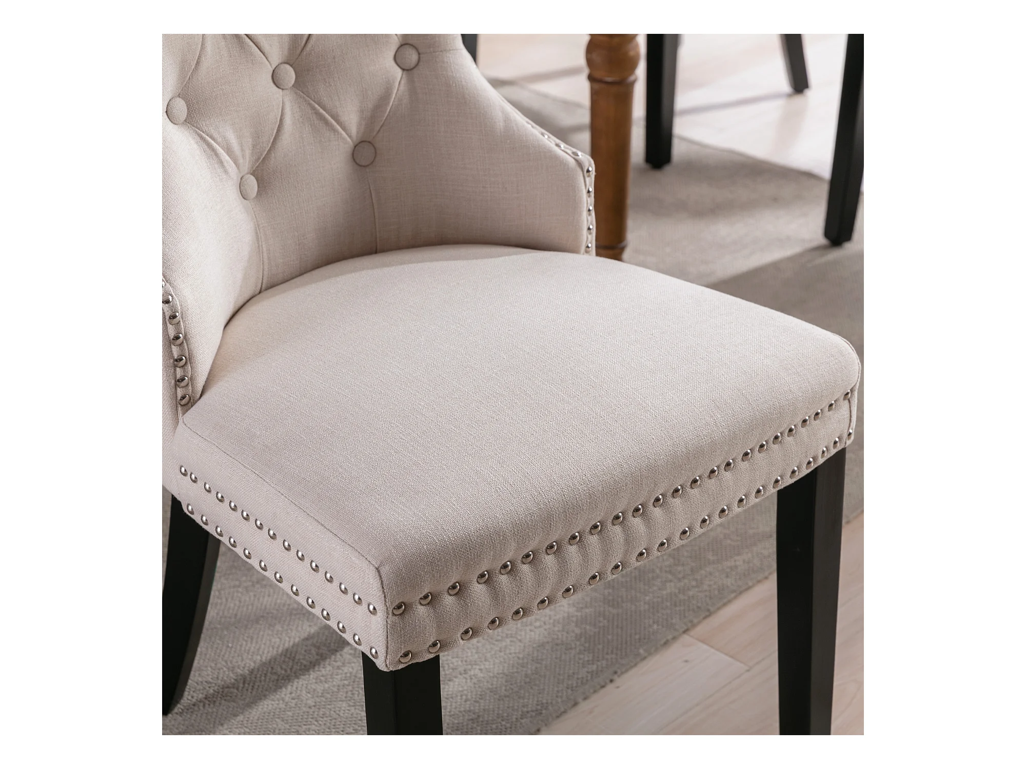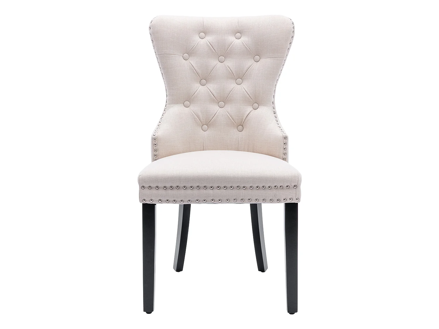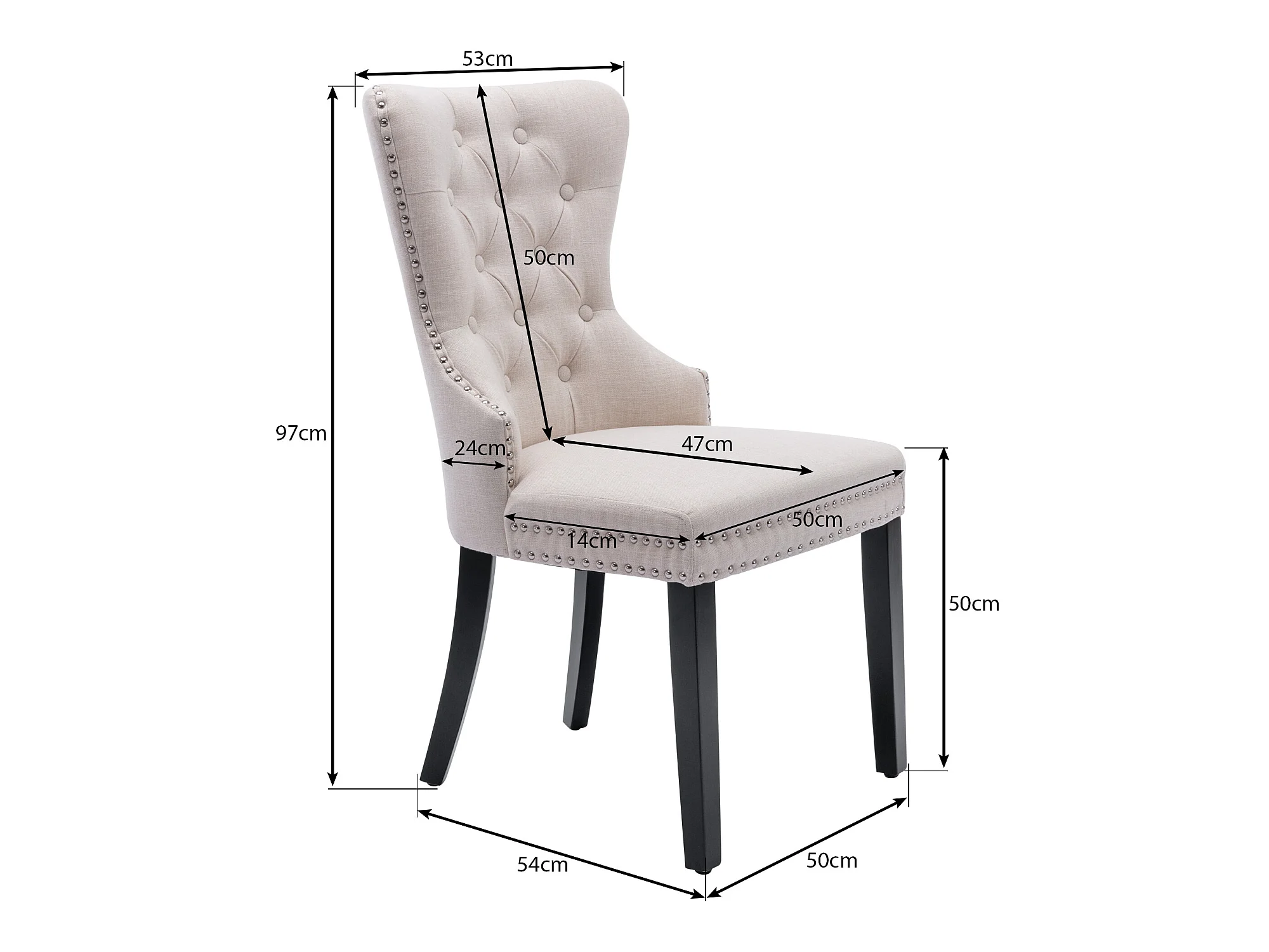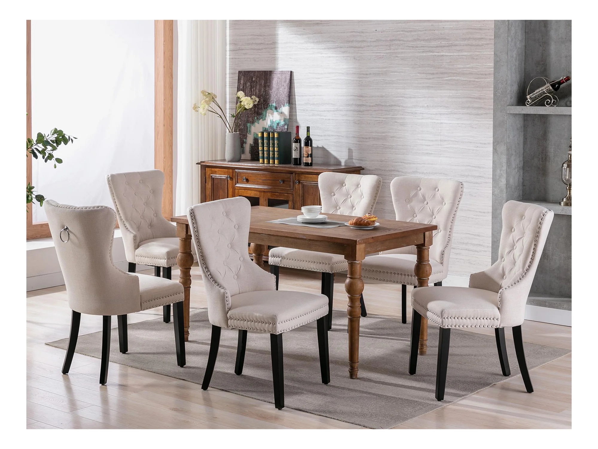 Lot de 6 chaises - tissu et pieds en bois massif - beige