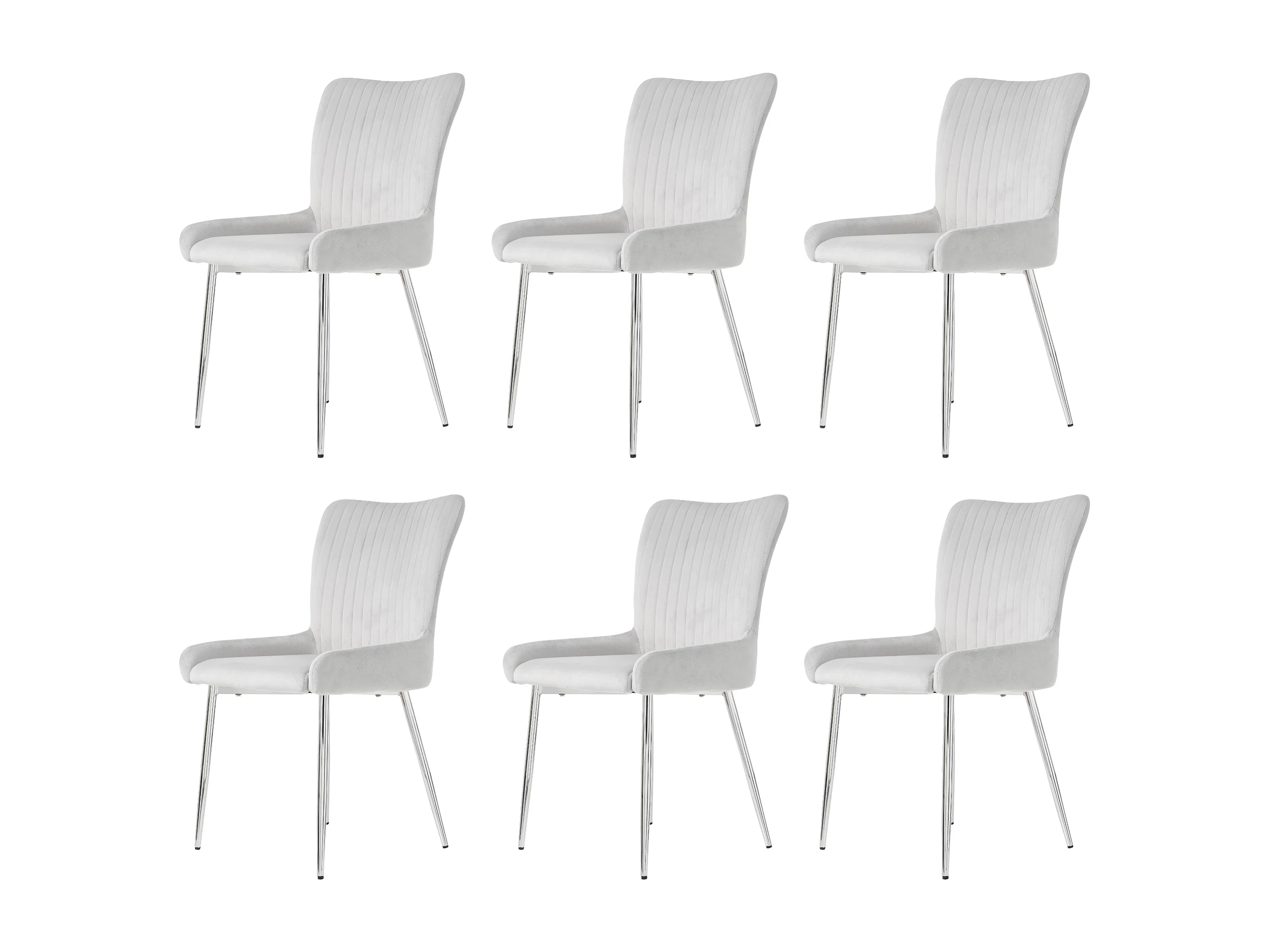 Lot de 6 chaises velours - 85 x 58 x 47 cm - chaise salon de luxe - quatre pieds en métal argenté - gris