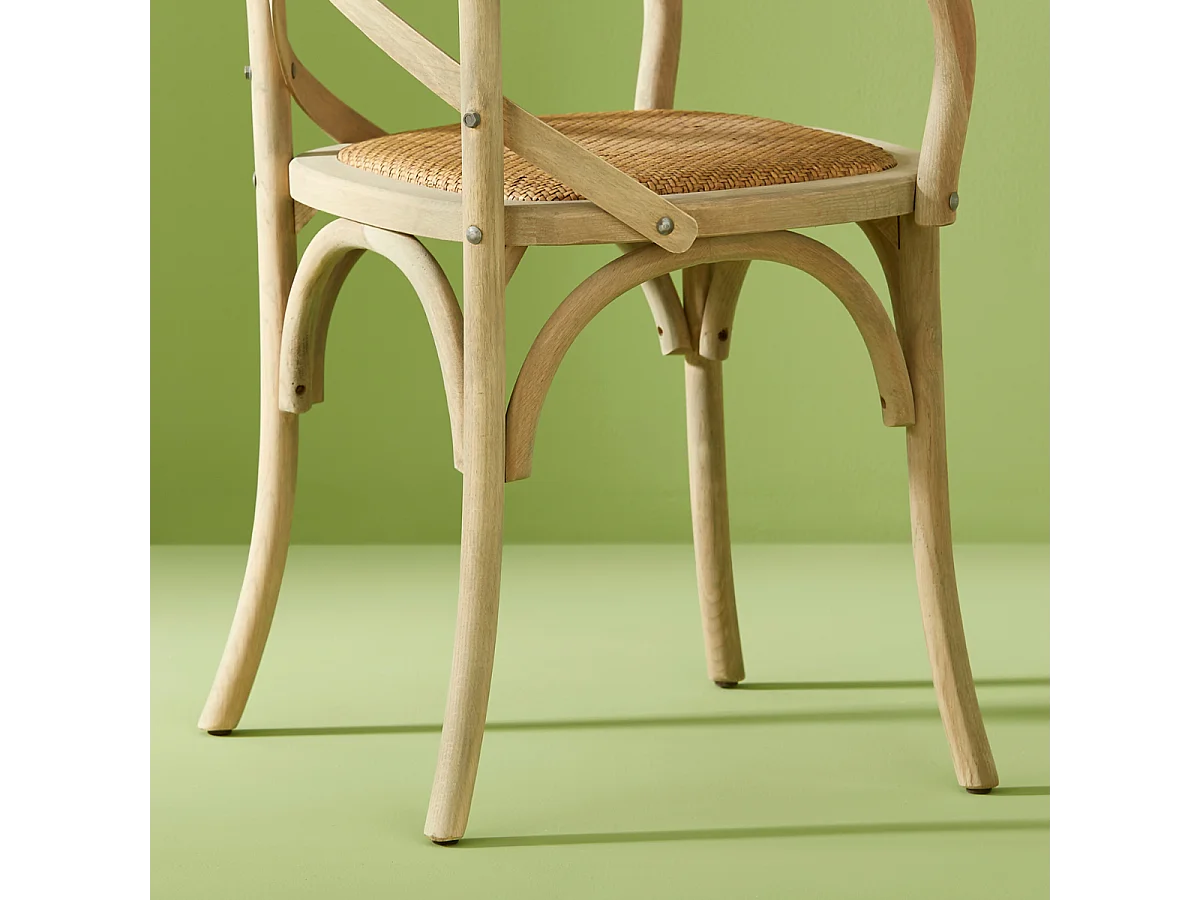 Lot de 6 fauteuils bridge en bois massif et cannage L62 cm - BISTROT