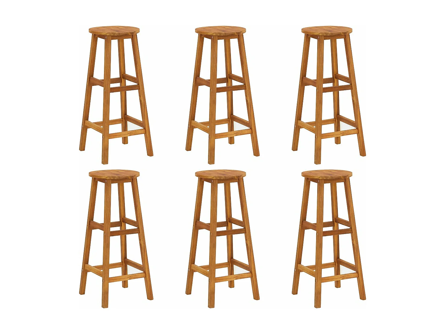 Lot de 6 Tabourets de bar bois d'acacia solide FR508064