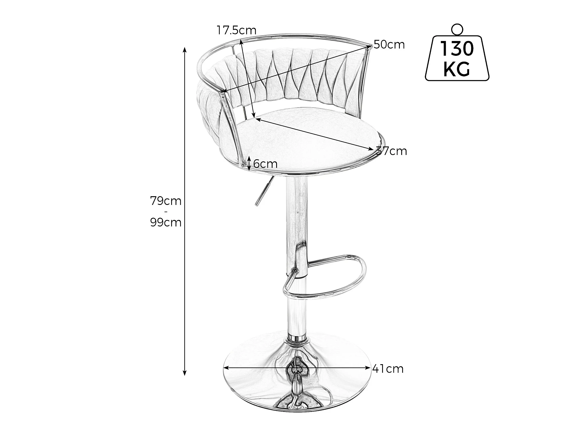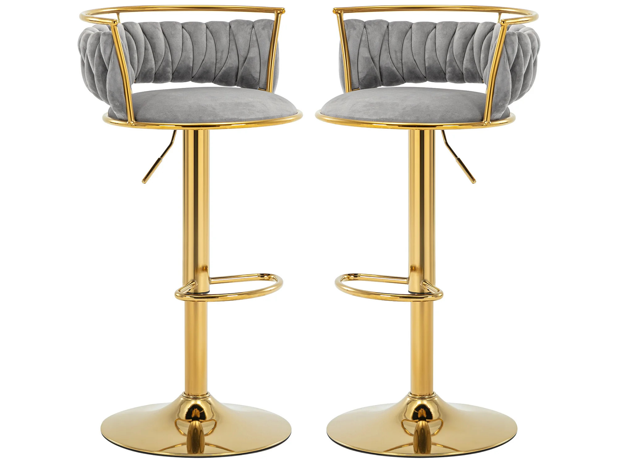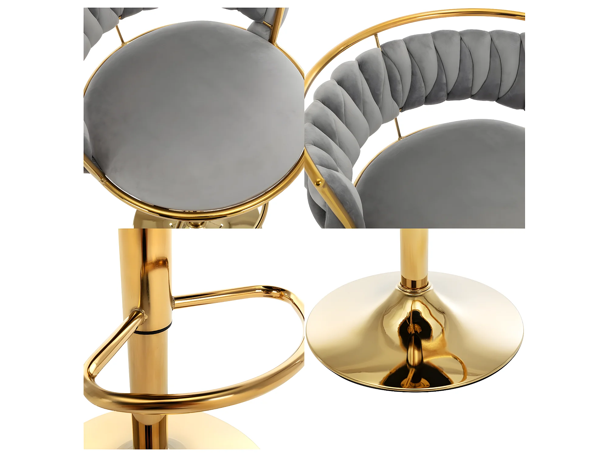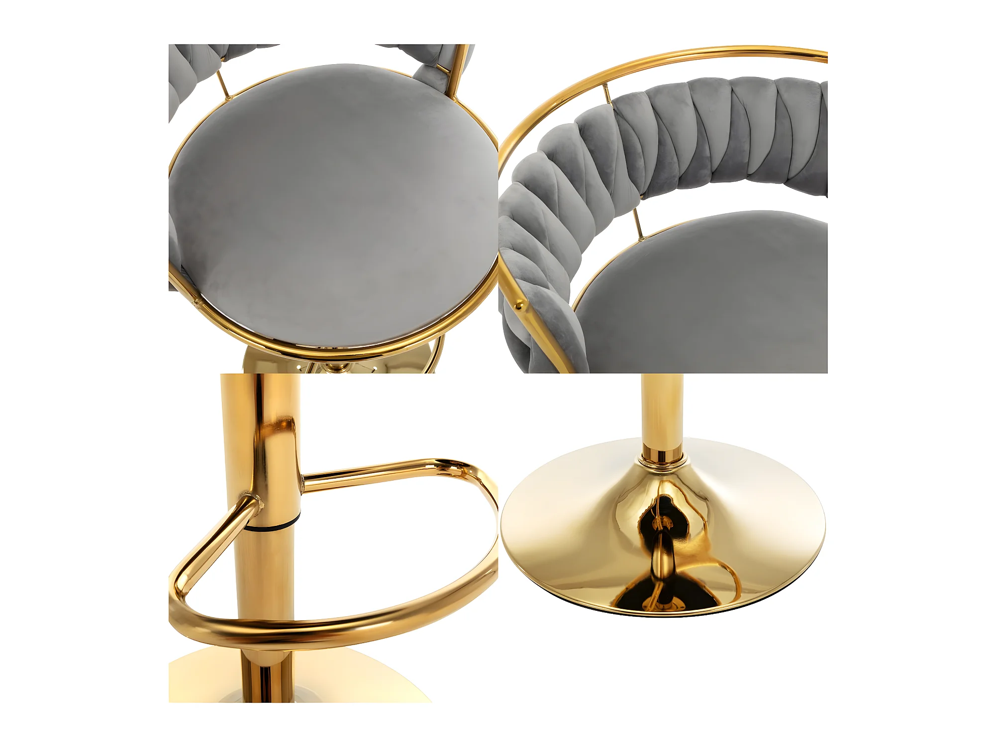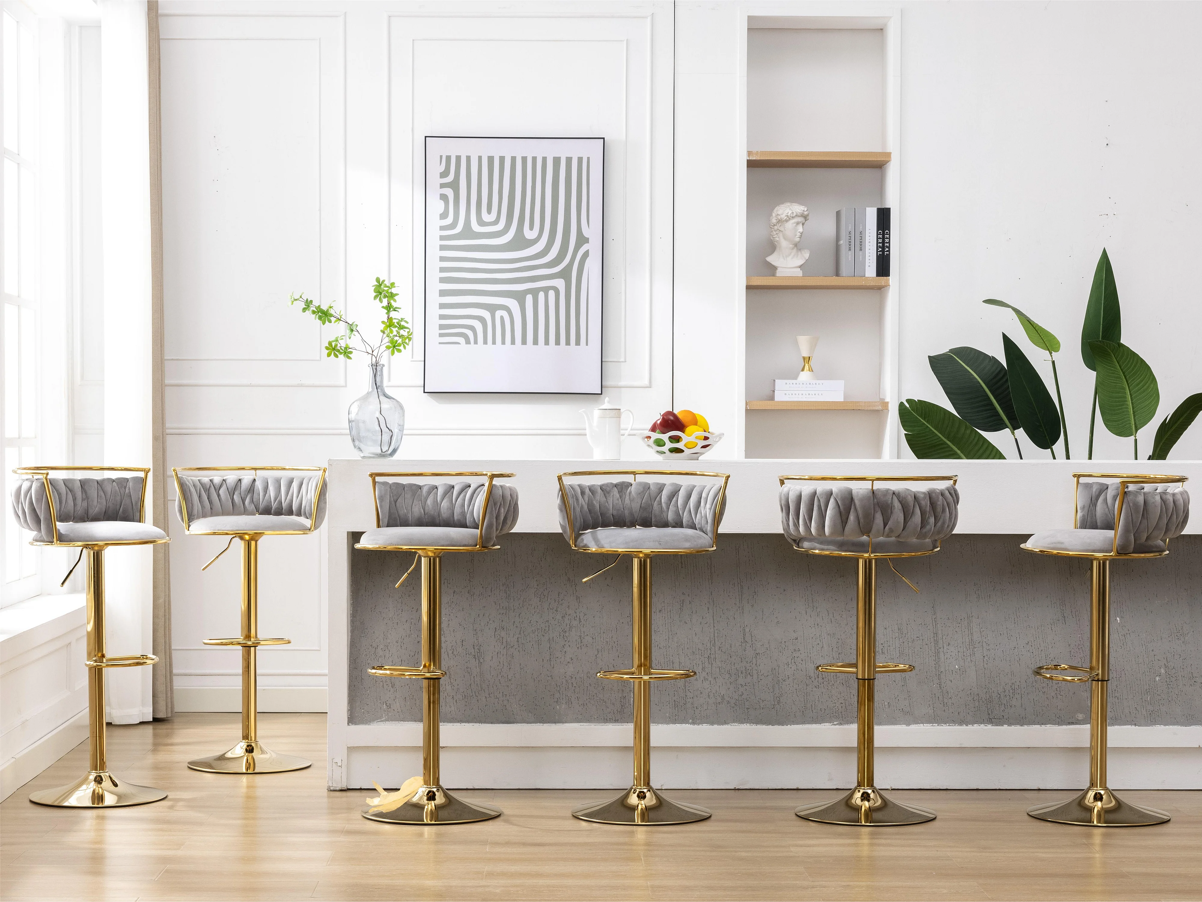 Lot de 6 tabourets de bar pivotants - réglable en hauteur - tissage en velours - Gris