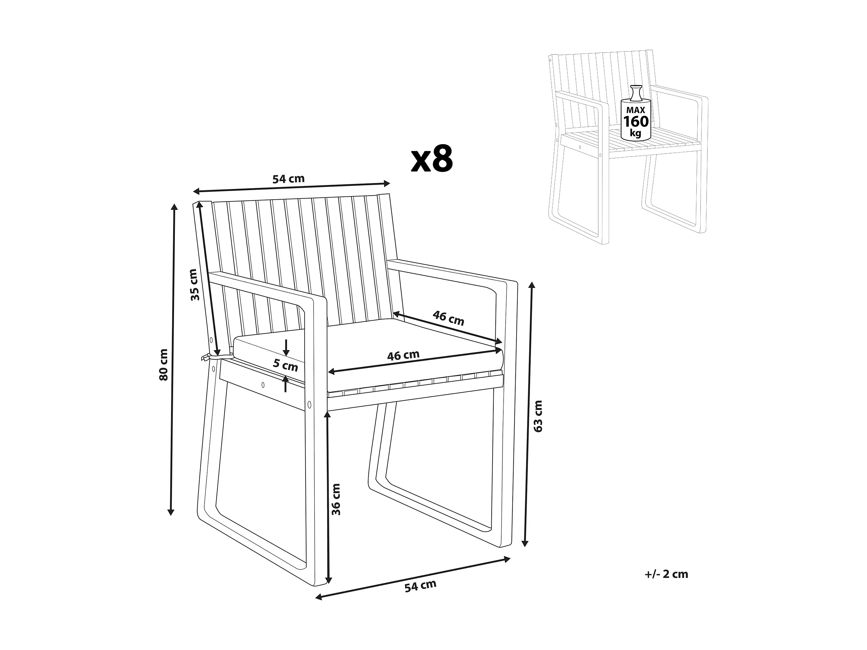 Lot de 8 chaises de jardin avec coussins SASSARI Acacia Bleu marine
