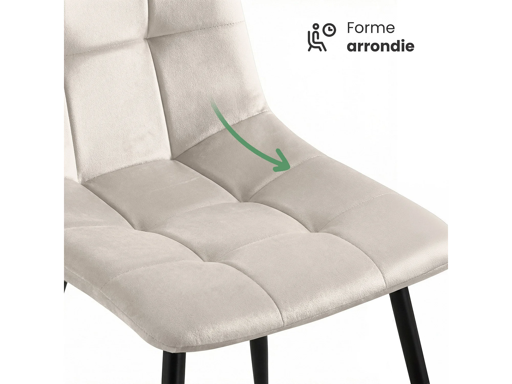 Lot de 8 Chaises en velours matelassées NERO Beige pieds noirs