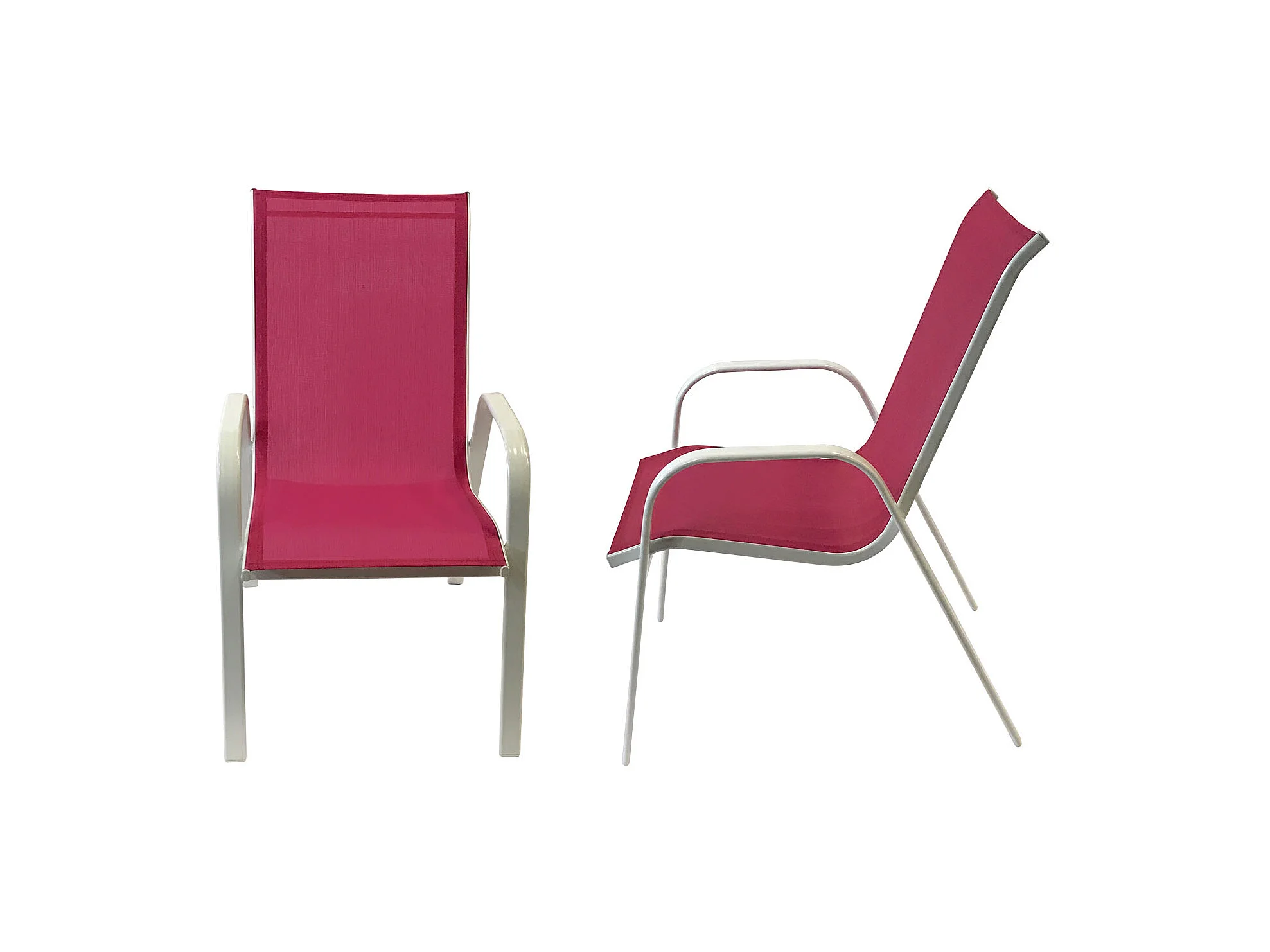 Lot de 8 chaises MARBELLA en textilène rose - aluminium blanc - HAPPY GARDEN