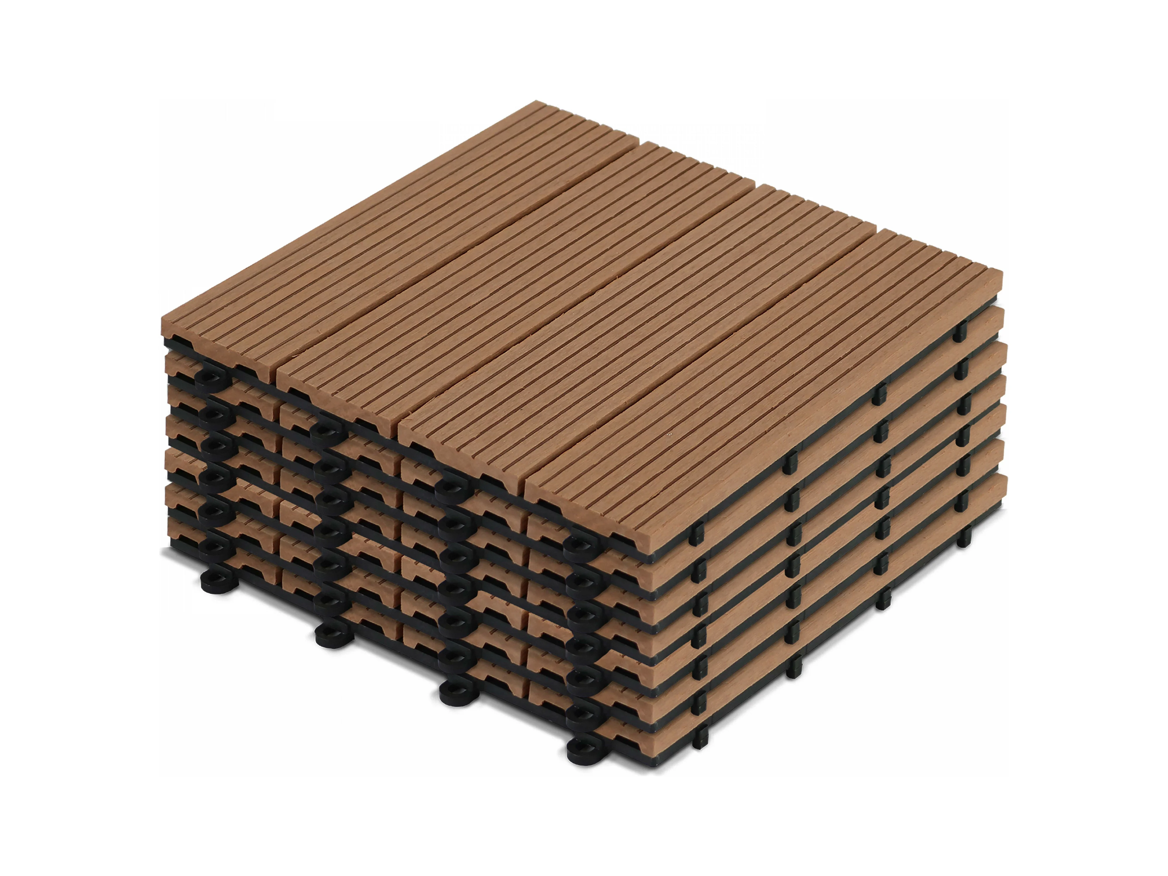 Dalles de Terrasses, SucceBuy Dalles de Terrasse Emboîtables en Bois Massif, Lot de 10, 30 × 30 cm en Pin Camphré pour Porche
