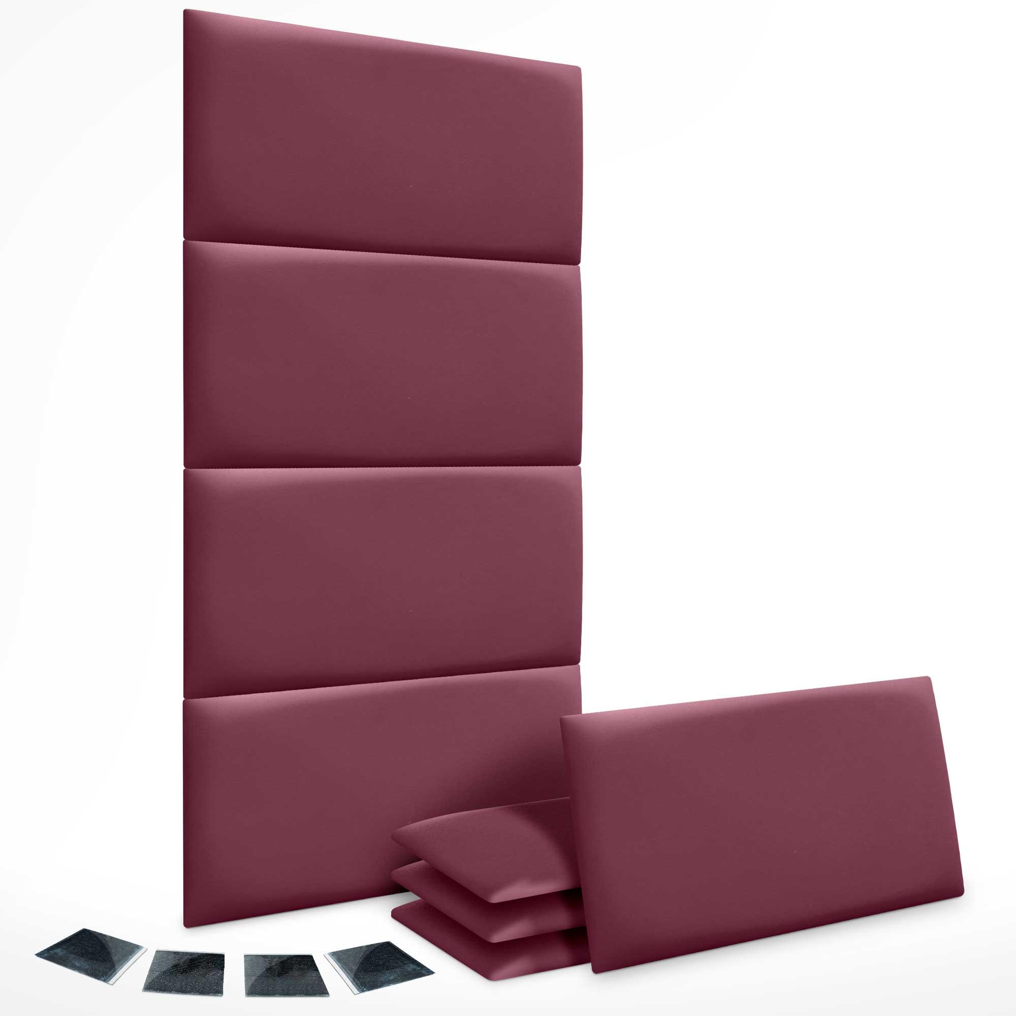 Lot de 8 panneaux rembourrés en similicuir écologique DHOME,pack autocollant pour protection acoustique murale absorbante (Rouge vin,50 x 30 cm,x8)