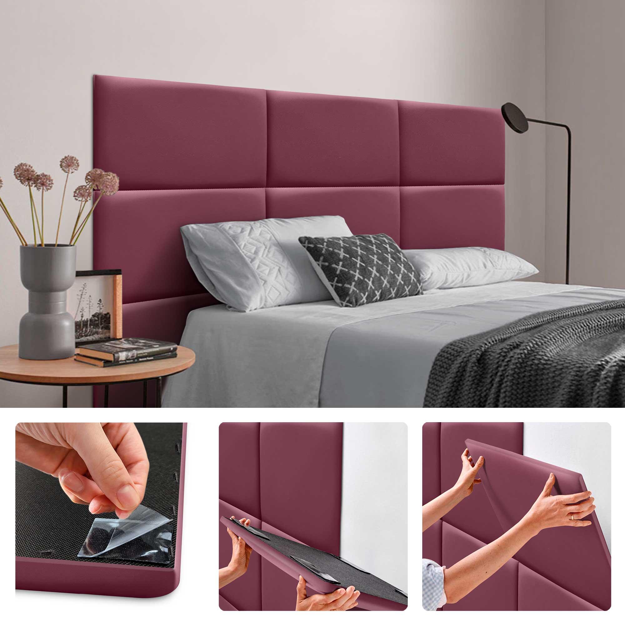 DHOME Panneaux Rembourrés en Similicuir Autocollants pour Mur Acoustiques Absorbants Protection contre les Chocs Têtes de Lit (rouge vin, 60x20cm)