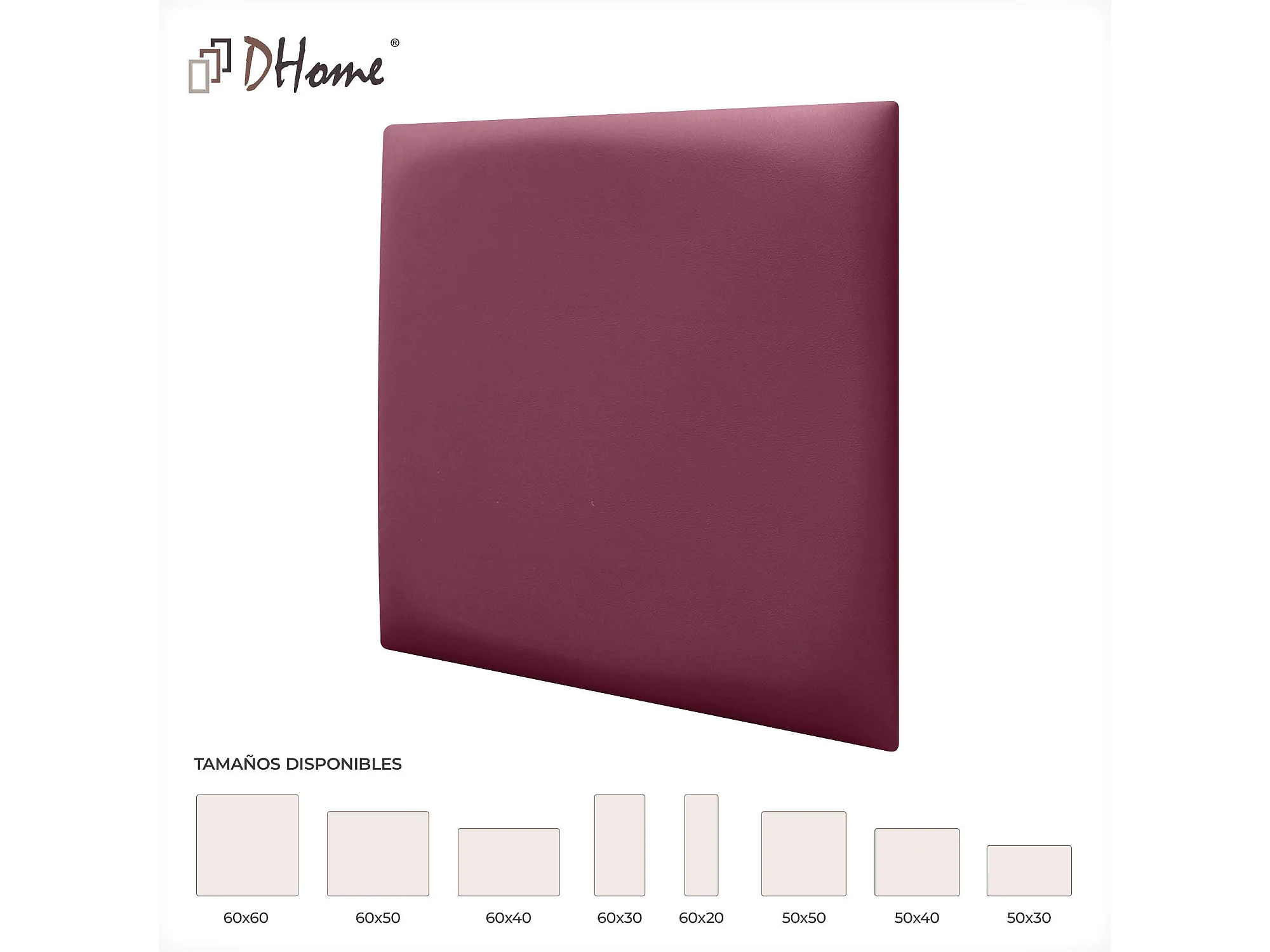 Lot de 8 panneaux rembourrés en similicuir écologique DHOME,pack autocollant pour protection acoustique murale absorbante (Rouge vin,60 x 60 cm,x8)