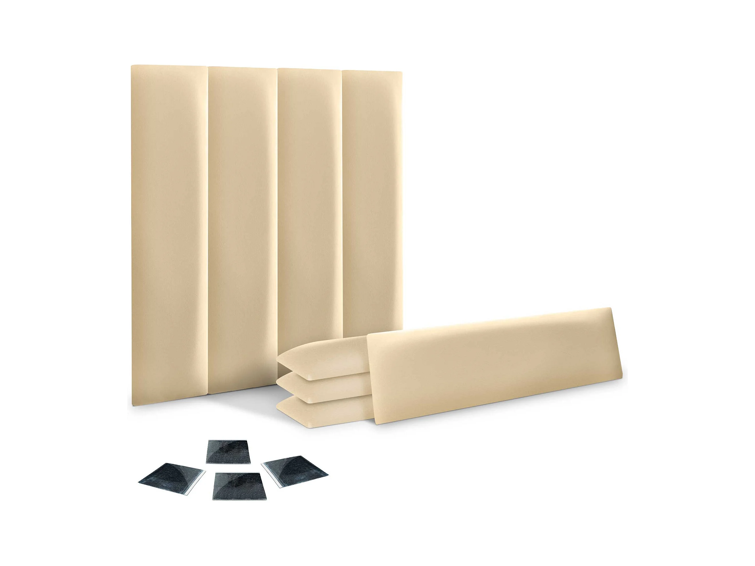 Lot de 8 panneaux rembourrés en similicuir écologique DHOME, pack autocollant pour protection acoustique murale absorbante (Vanille, 60 x 20 cm, x8)