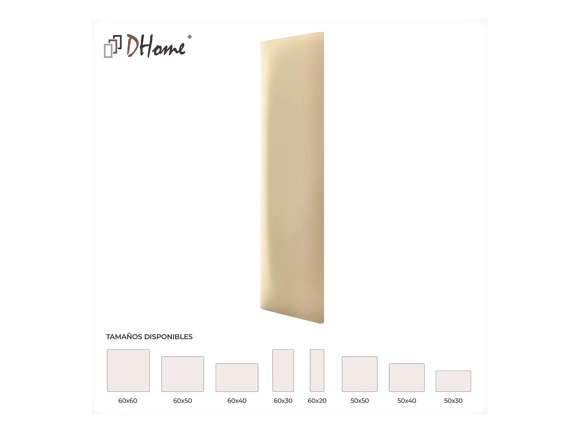 Lot de 8 panneaux rembourrés en similicuir écologique DHOME, pack autocollant pour protection acoustique murale absorbante (Vanille, 60 x 30 cm, x8)