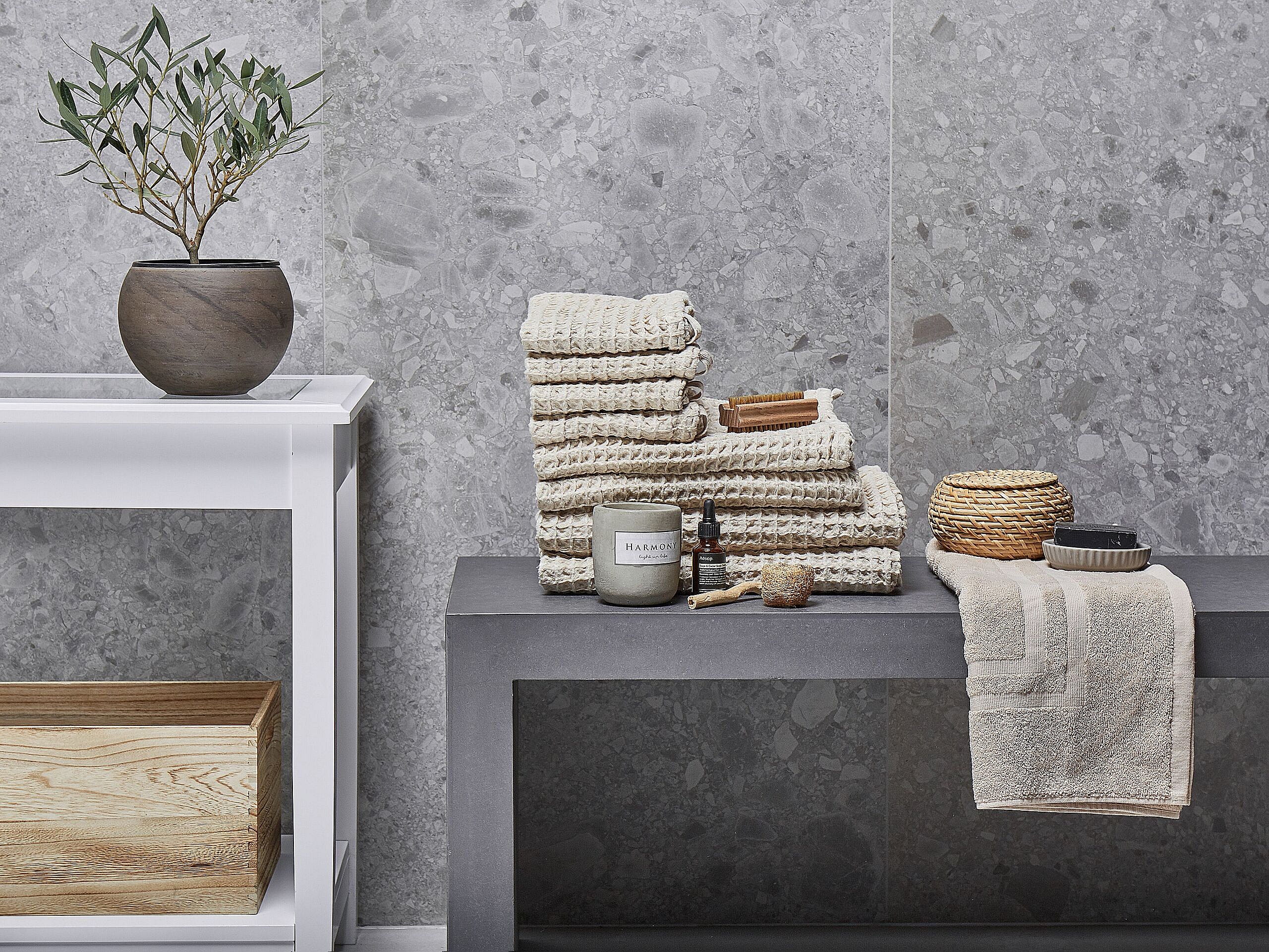 Lot de 9 serviettes MITIARO Tissu éponge Beige sable
