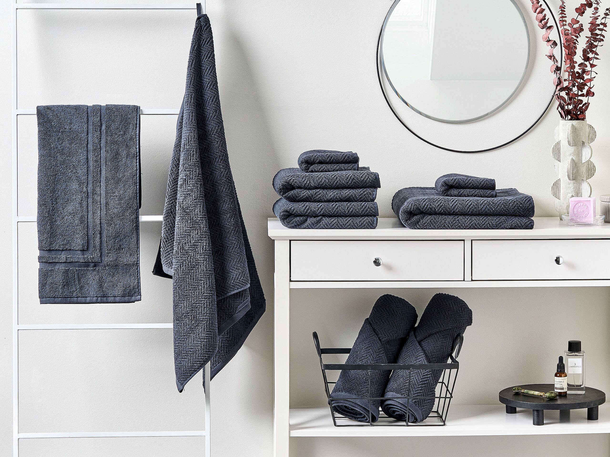 Lot de 9 serviettes MITIARO Tissu éponge Bleu foncé