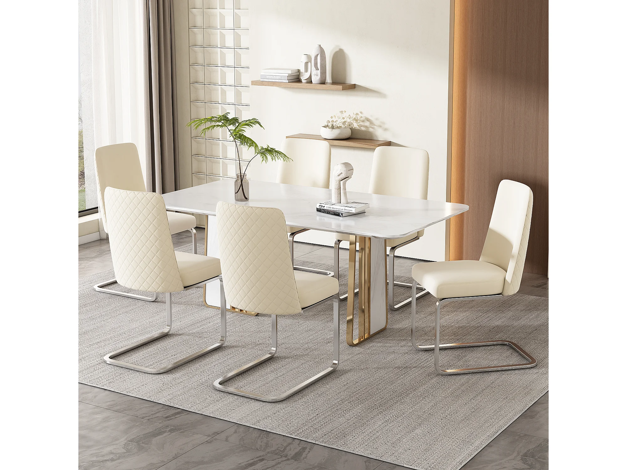 Lot de salon 4 chaises en velours de luxe - 87 x 55 x 42 cm - dossier en diamant - pieds en métal argenté - beige