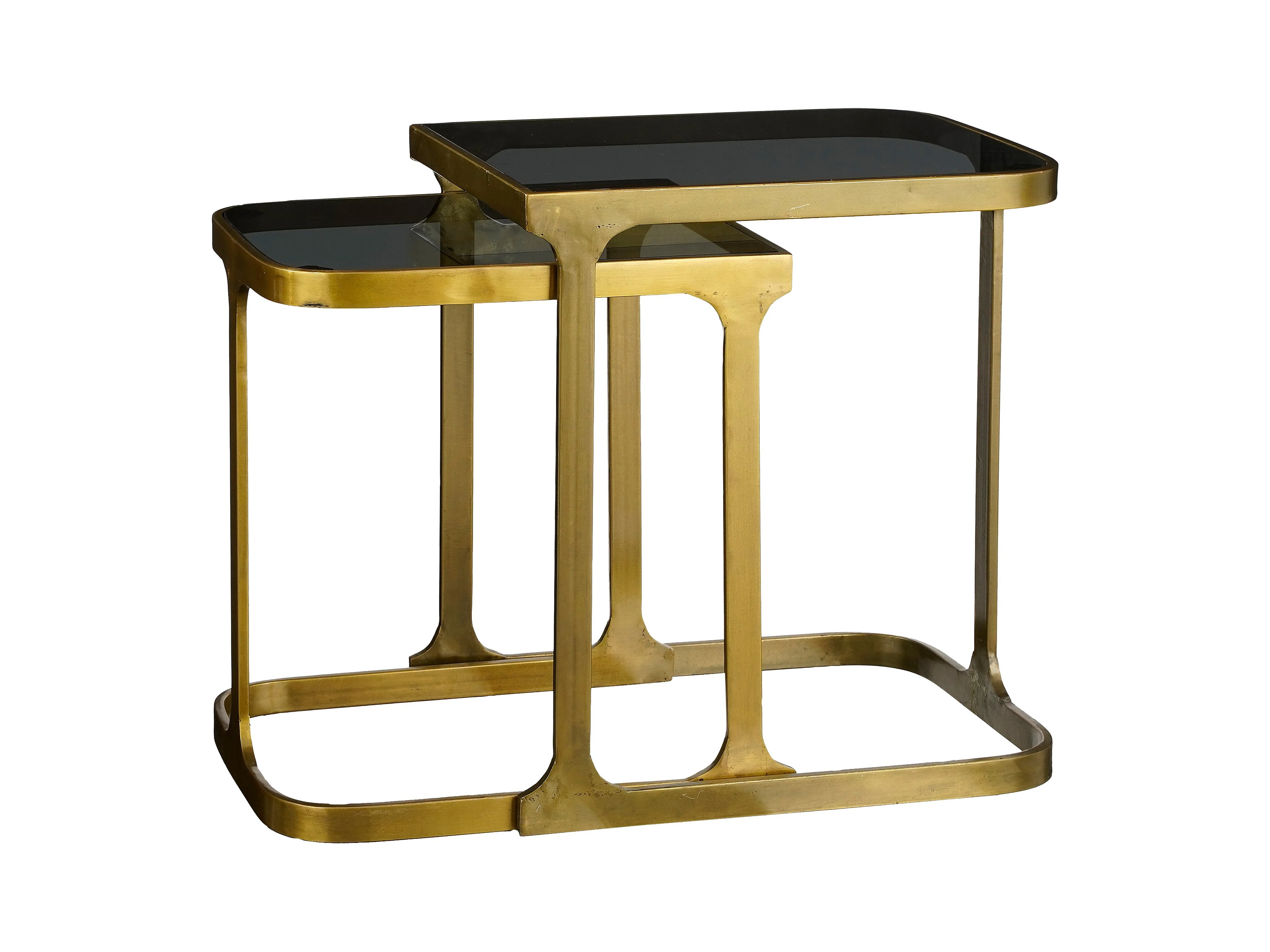 Lot de table d'appoint en métal et verre - 48 x 37 x 52 - Doré - KEVIN