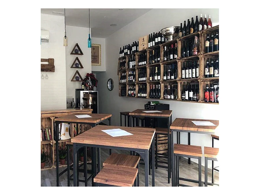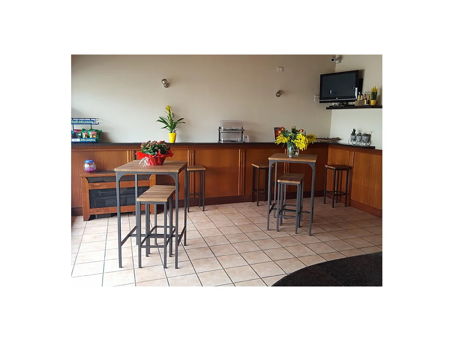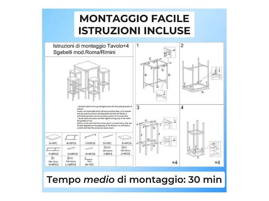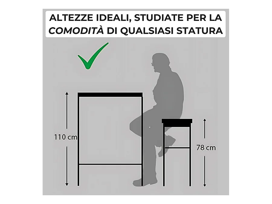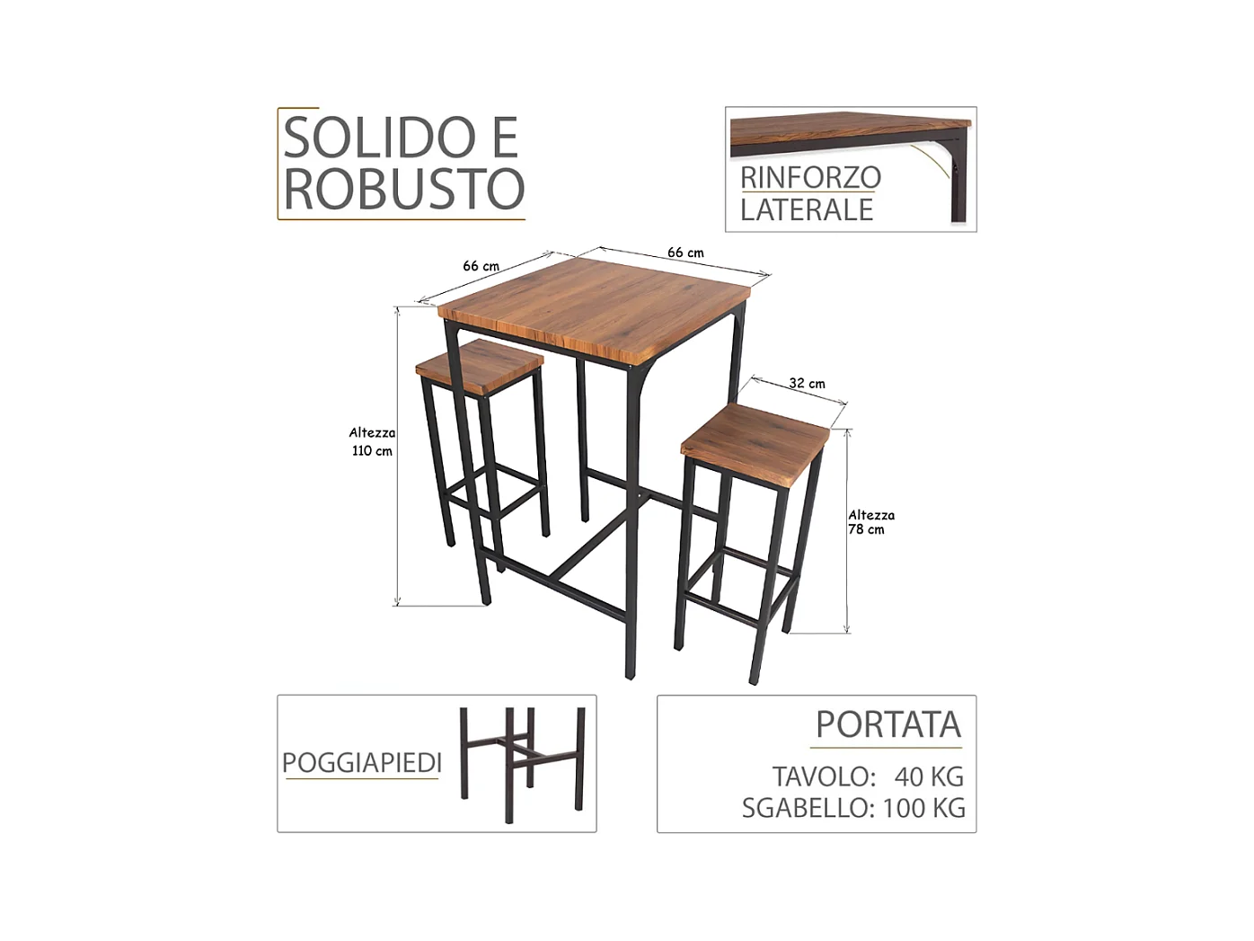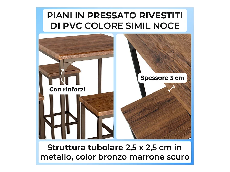 Lot de table de bar carrée de 110 cm de haut et 4 tabourets en noyer brun Mod. ROMA par Yelloo