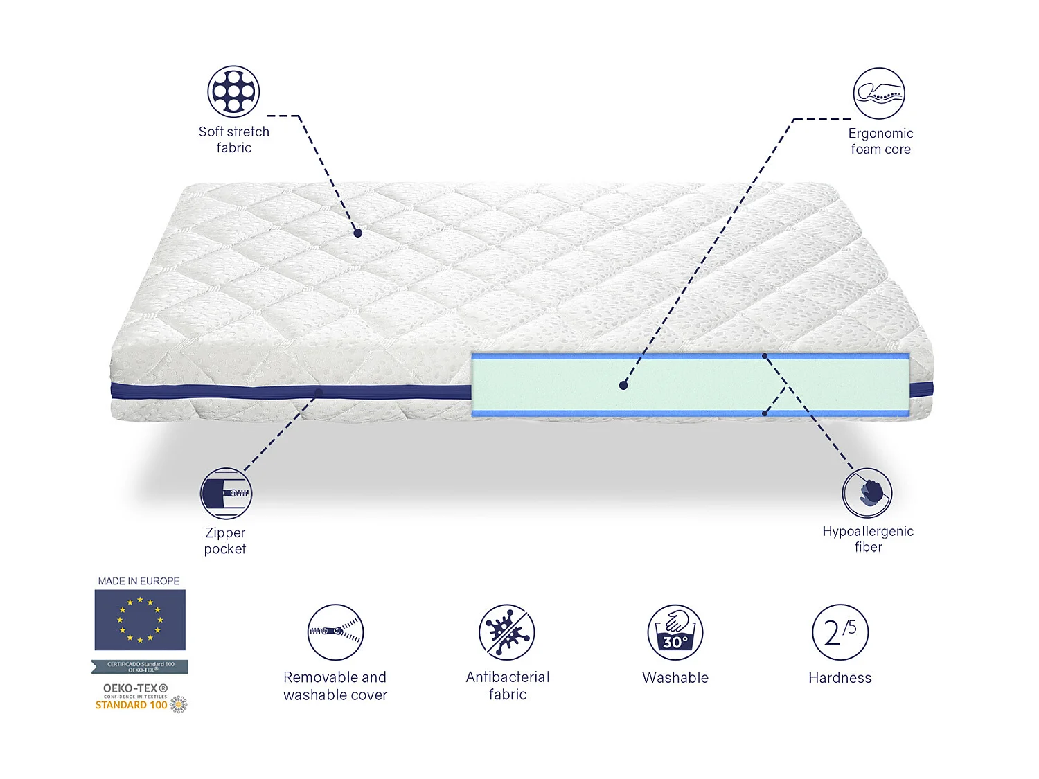 LOT X2 Matelas en mousse respirante 80X190 HERMES, Epaisseur 11 CM, Dehoussable, Ergonomique et adaptable