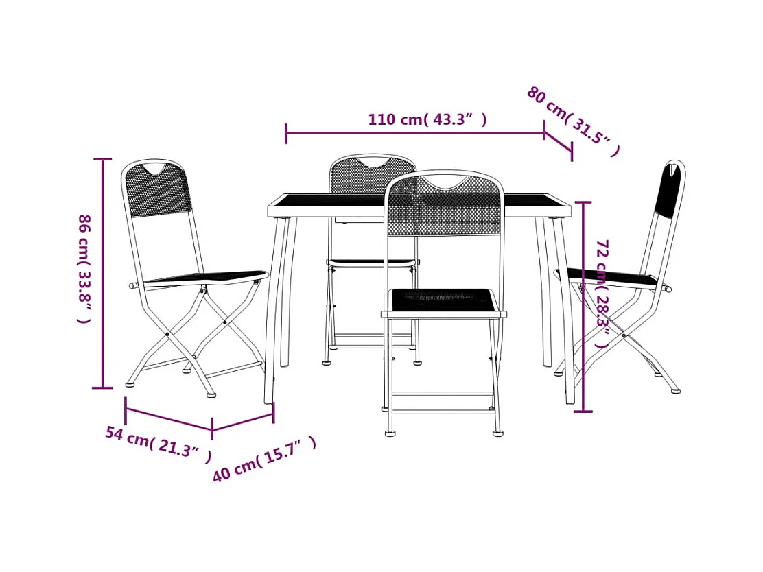 Luan Ensemble à manger de jardin 5 pcs anthracite métal maille
