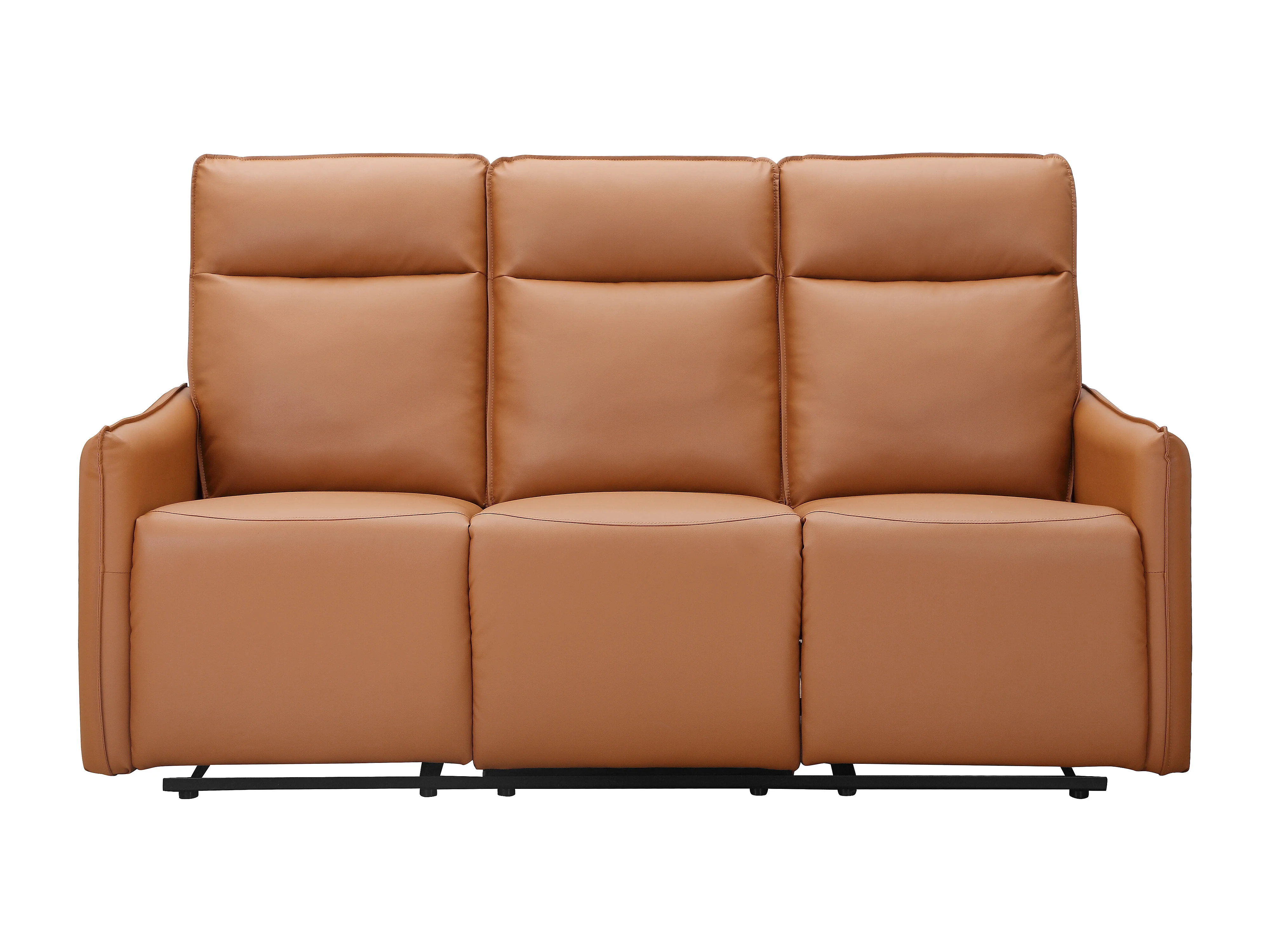 Lugo | Canapé 3 places avec 2 fauteuils inclinables manuels en PU couleur cognac