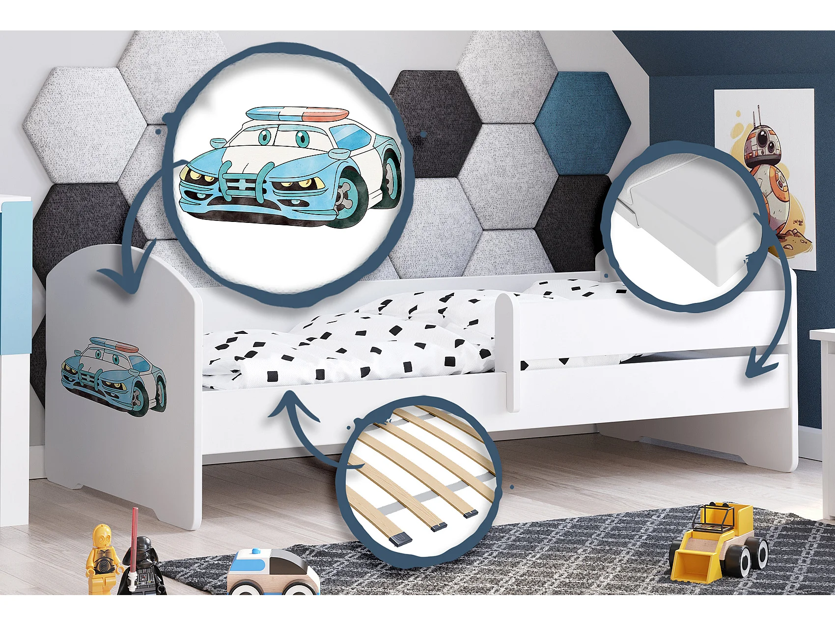 Luk - lit simple 160x80 avec graphisme pour enfants, dans un ensemble avec garde-corps, matelas et cadre
