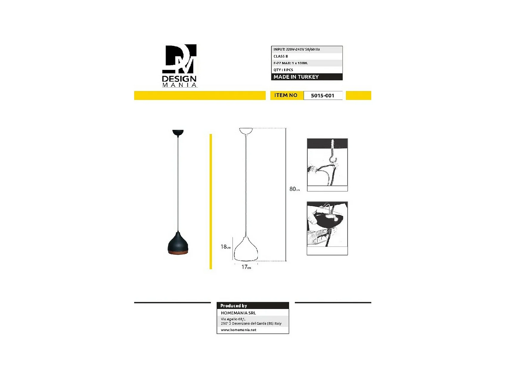 Suspension Firenze, Noir, 17x17x80 cm, EPIKASA