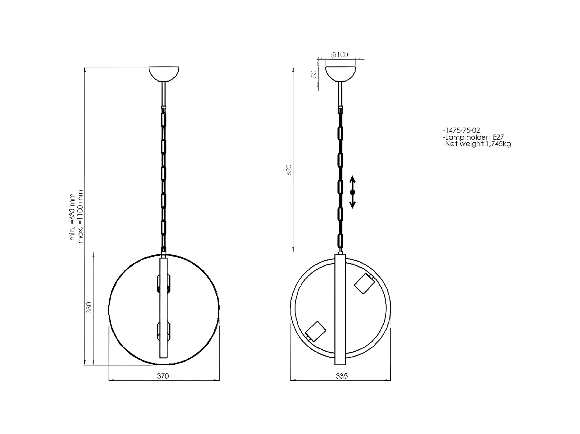 Suspension Treviso, Or, 33,5x37x110 cm, EPIKASA