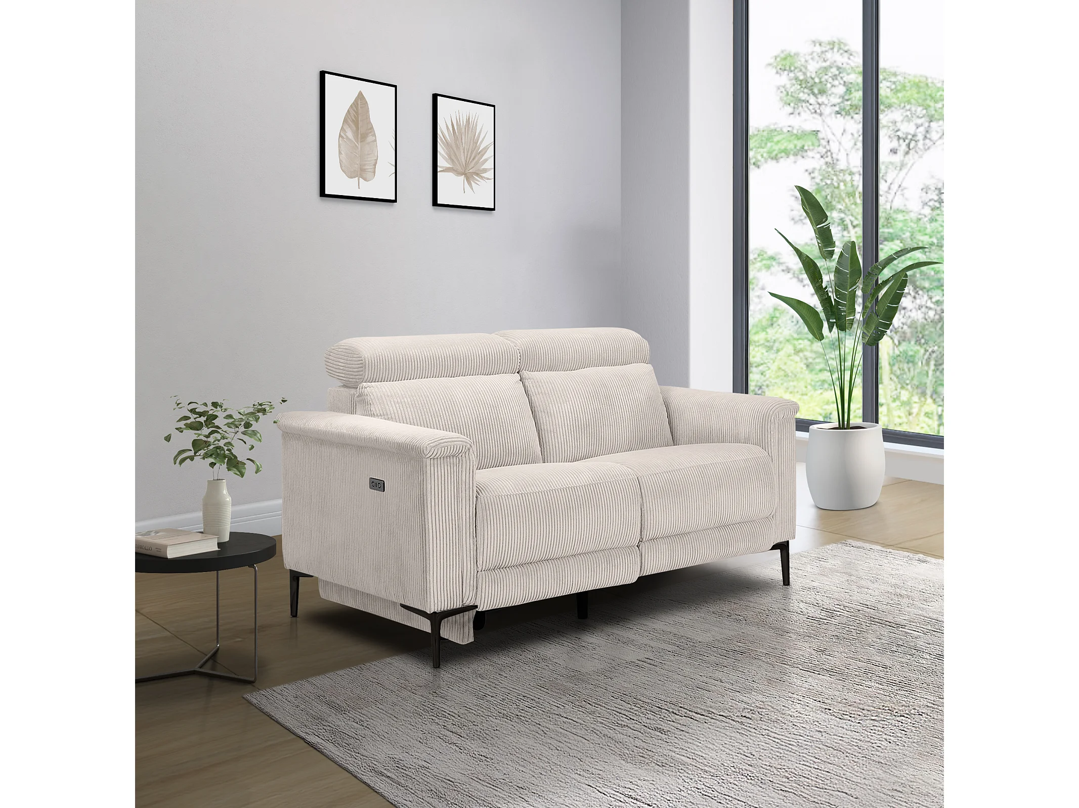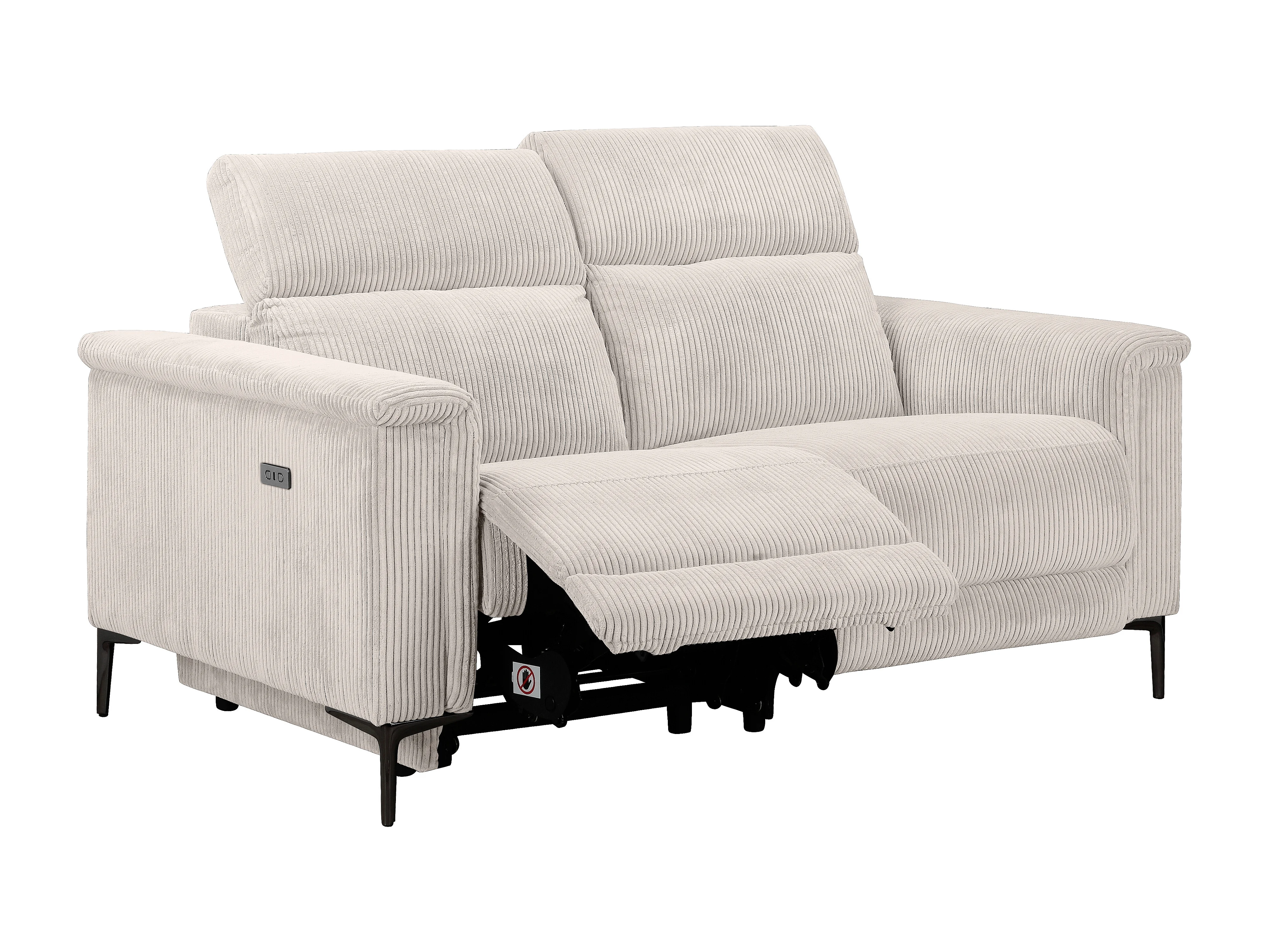 Lund | Canapé 2 places avec 1 fauteuil inclinable électrique en velours côtelé crème