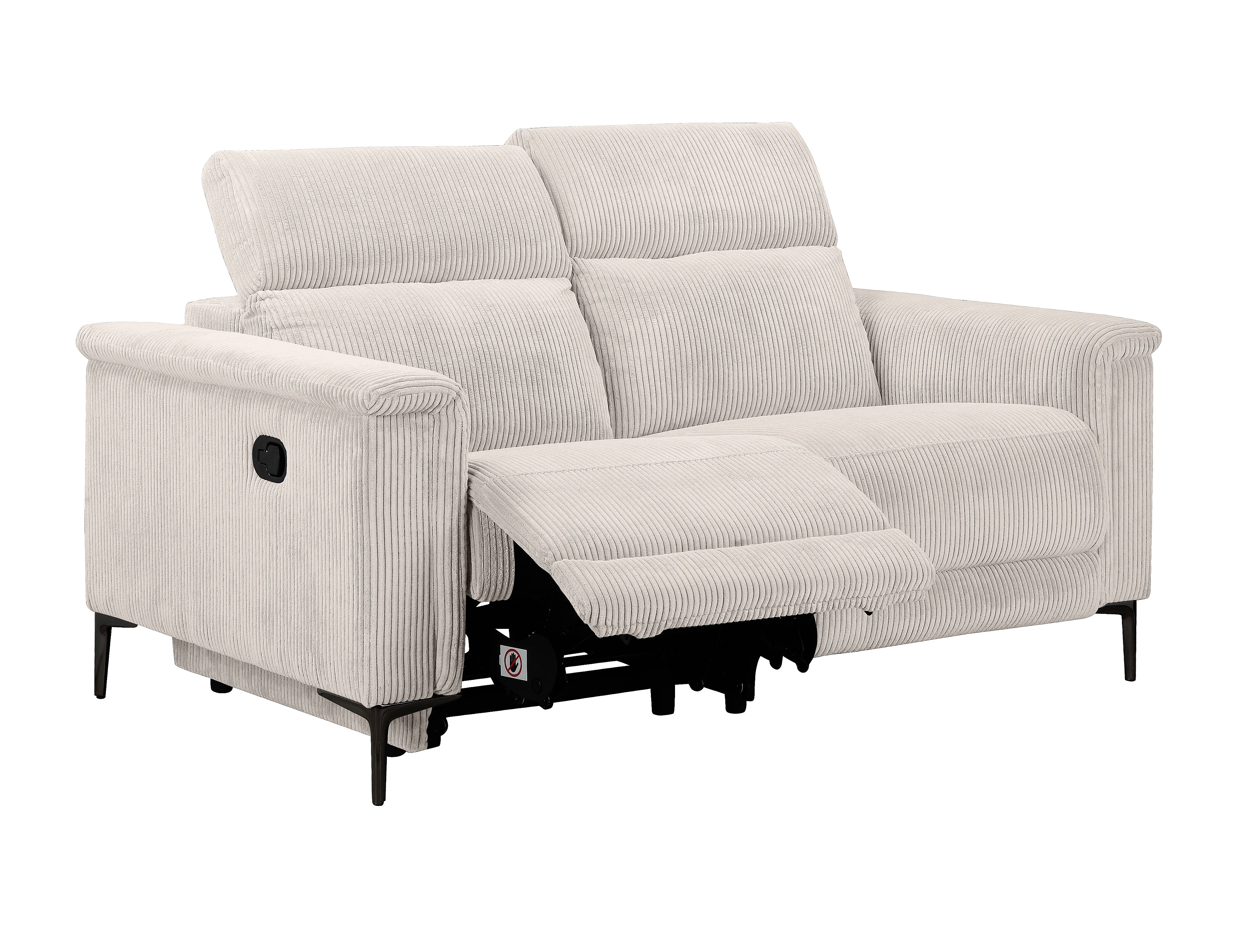 Lund | Canapé 2 places avec 1 fauteuil inclinable manuel en tissu crème