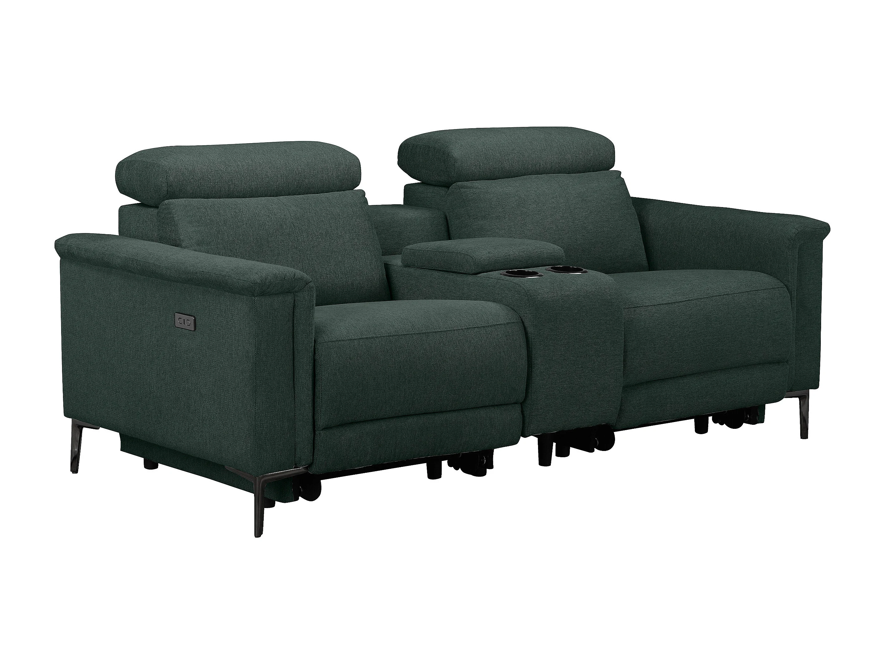 Lund | Fauteuil inclinable double avec fonction électrique en tissu vert foncé